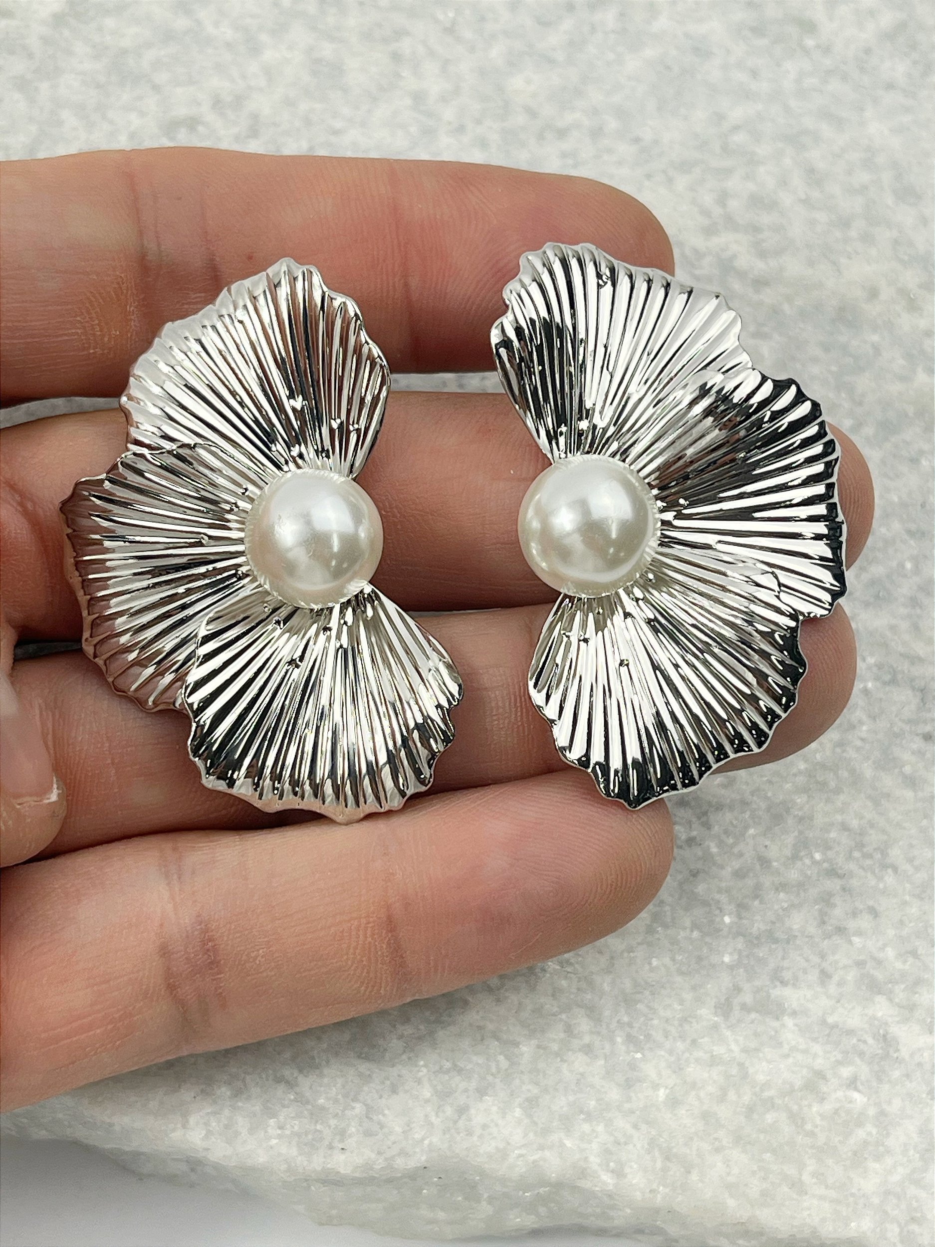 Brinco Orgânico com pérola banho diamante com verniz - 1 par