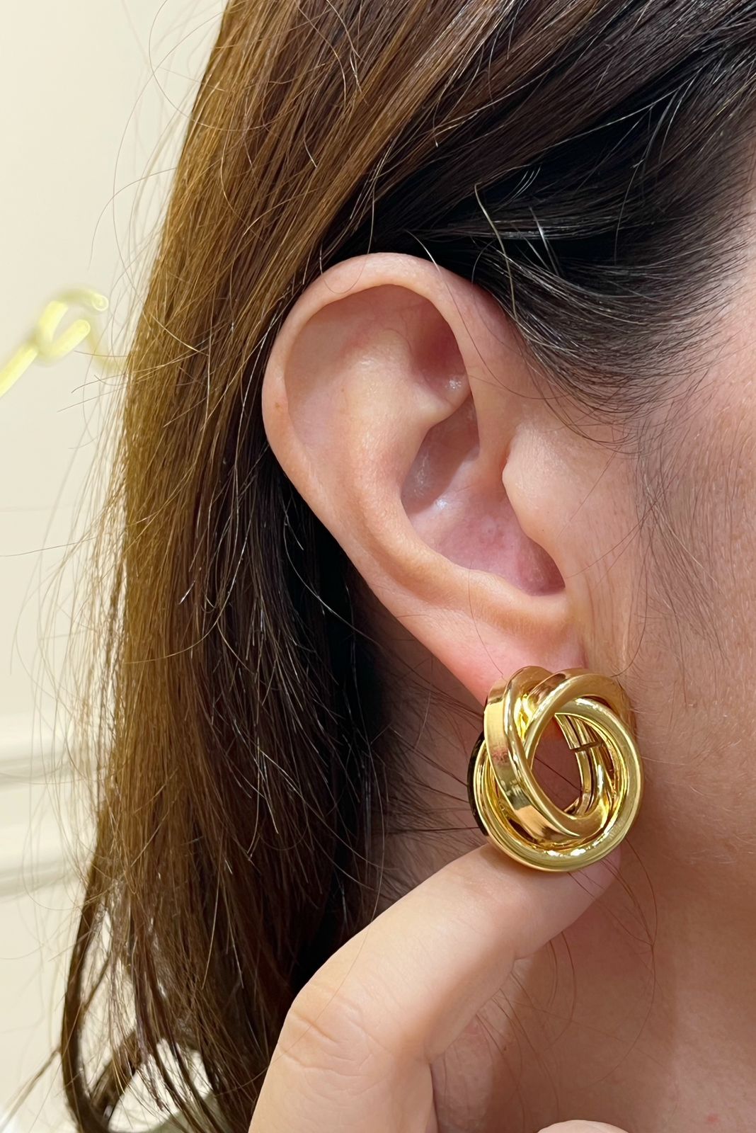 Brinco Argola Dupla organico Banho ouro com tarraxa Banho Ouro 2 milésimos com verniz italiano - 1 par