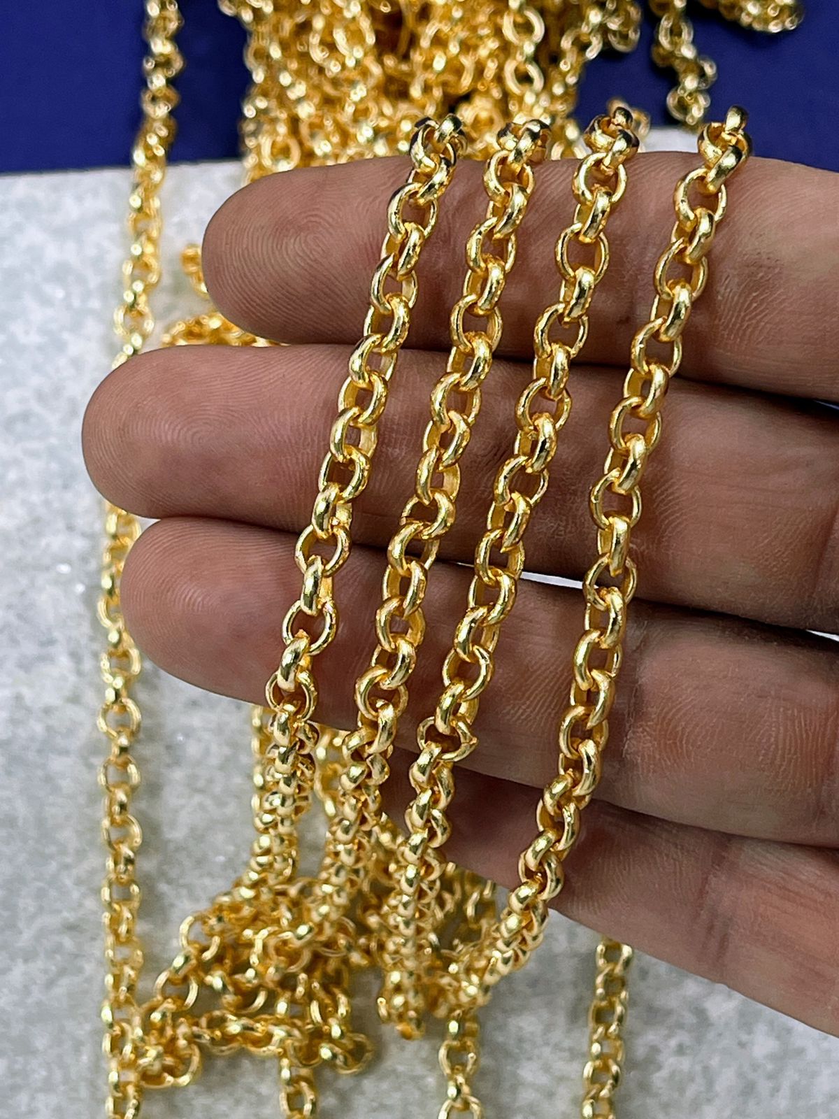 Corrente Guarana elo portugues meia cana - arame 1,85mm - ferro banho ouro 2 milésimos com verniz - 1 metro