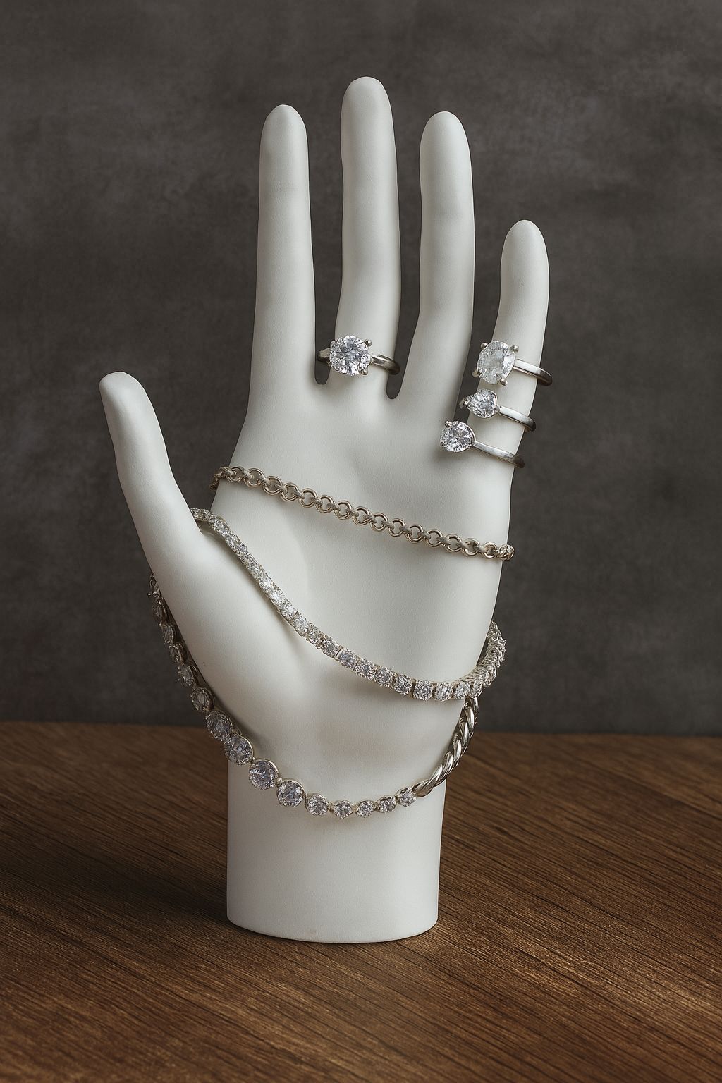 O Expositor Mão Decorativa é perfeito para valorizar cada detalhe das suas peças, destacando brilho, design e acabamento com total harmonia.