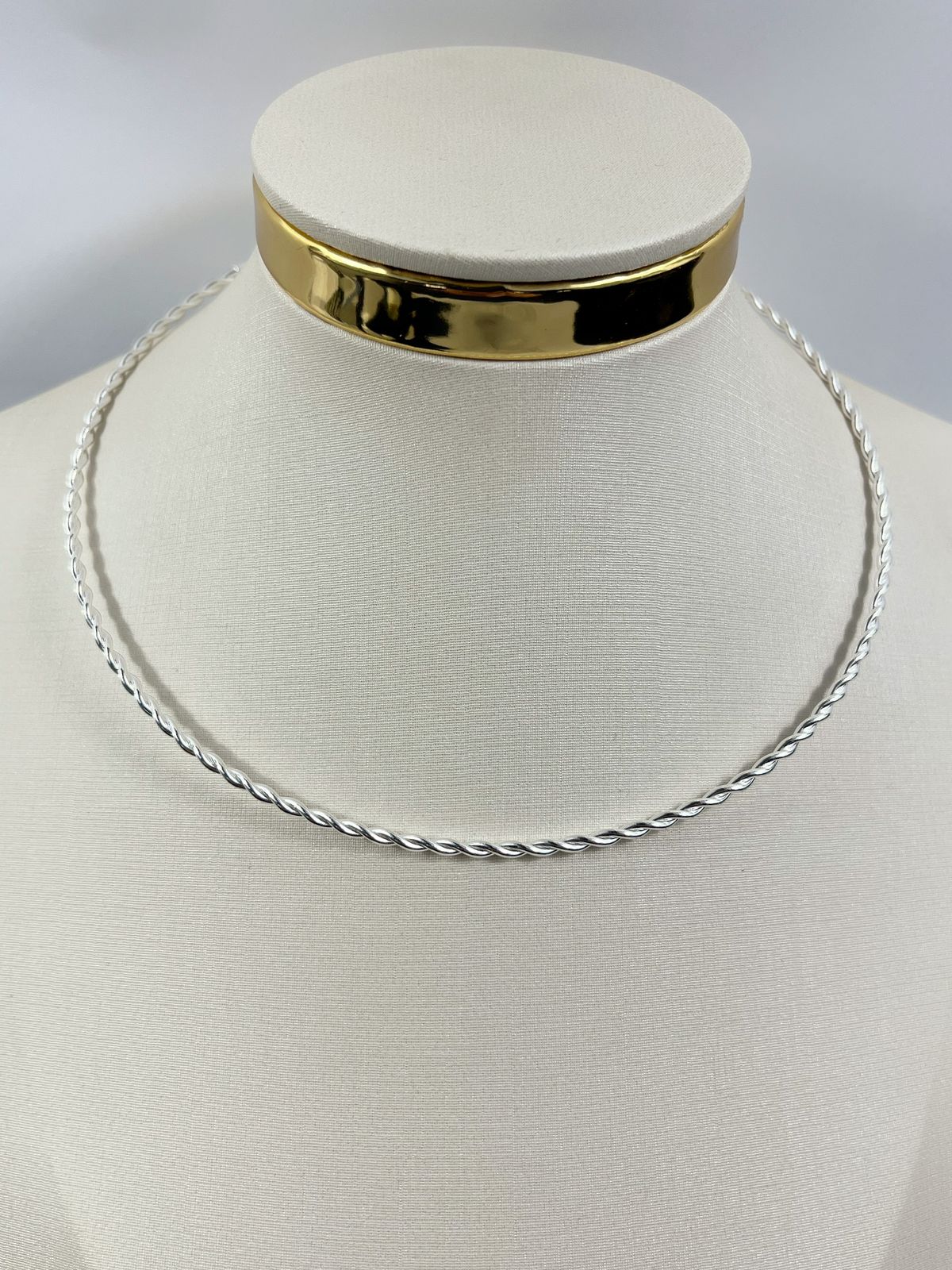 Choker aro torcida Banho Prata 925 Semijoia 50 milésimos - com extensora - 1 unidade