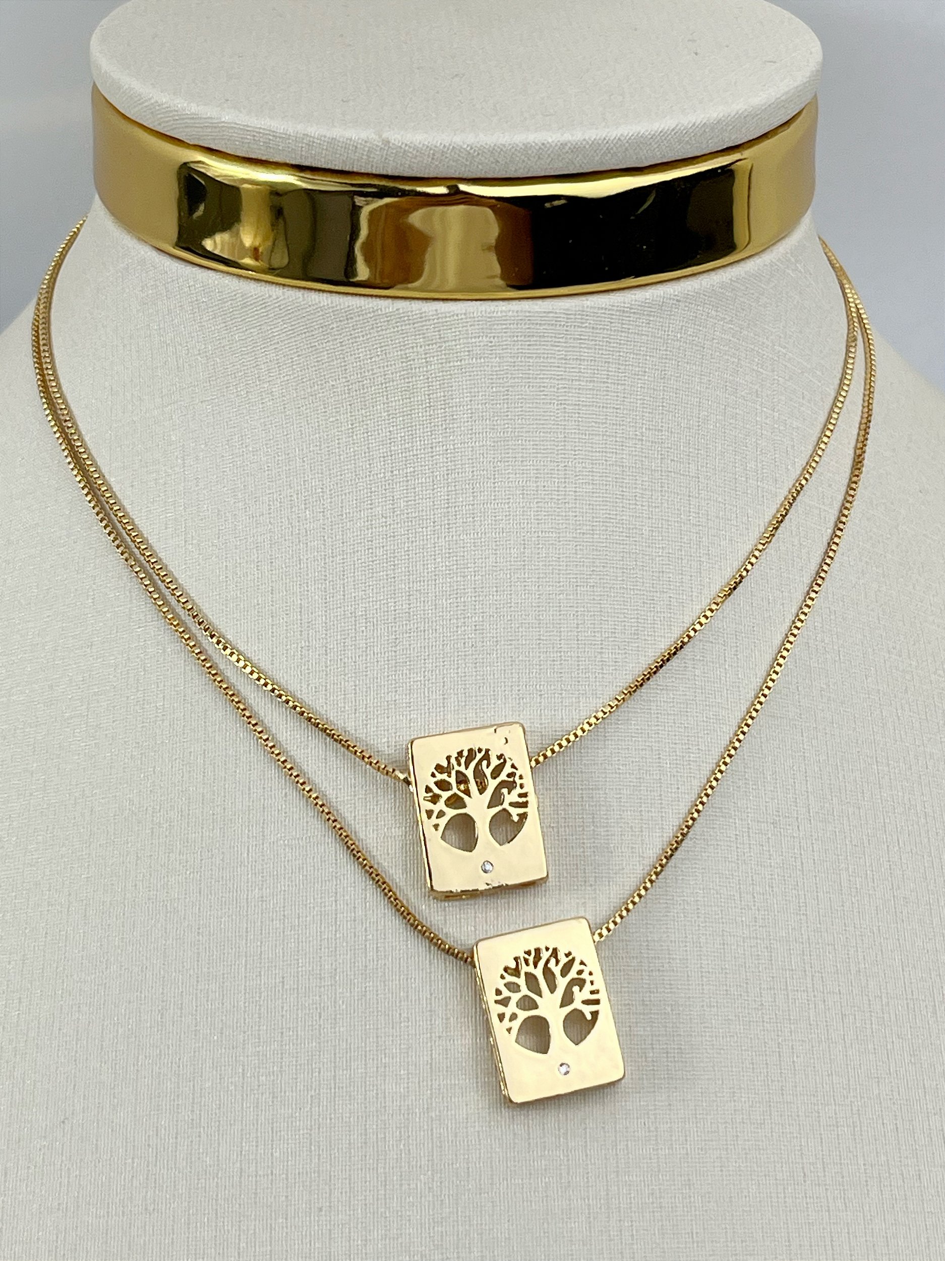 Escapulário Árvore da Vida corrente veneziana banho ouro - medida 60cm - 1 unidade