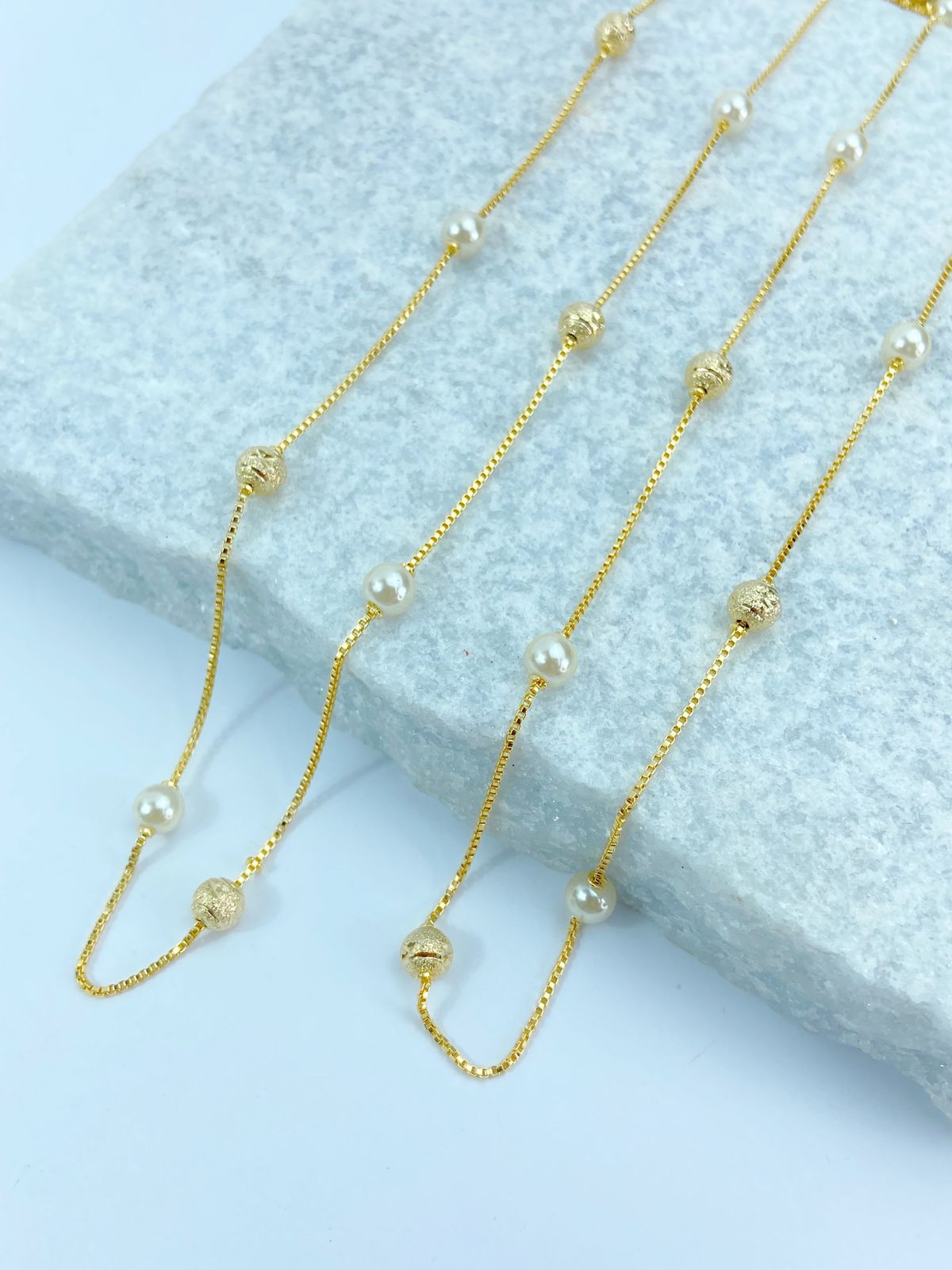 Corrente Veneziana Perola bolinha - banho ouro 2 milésimos com verniz - 1 metro