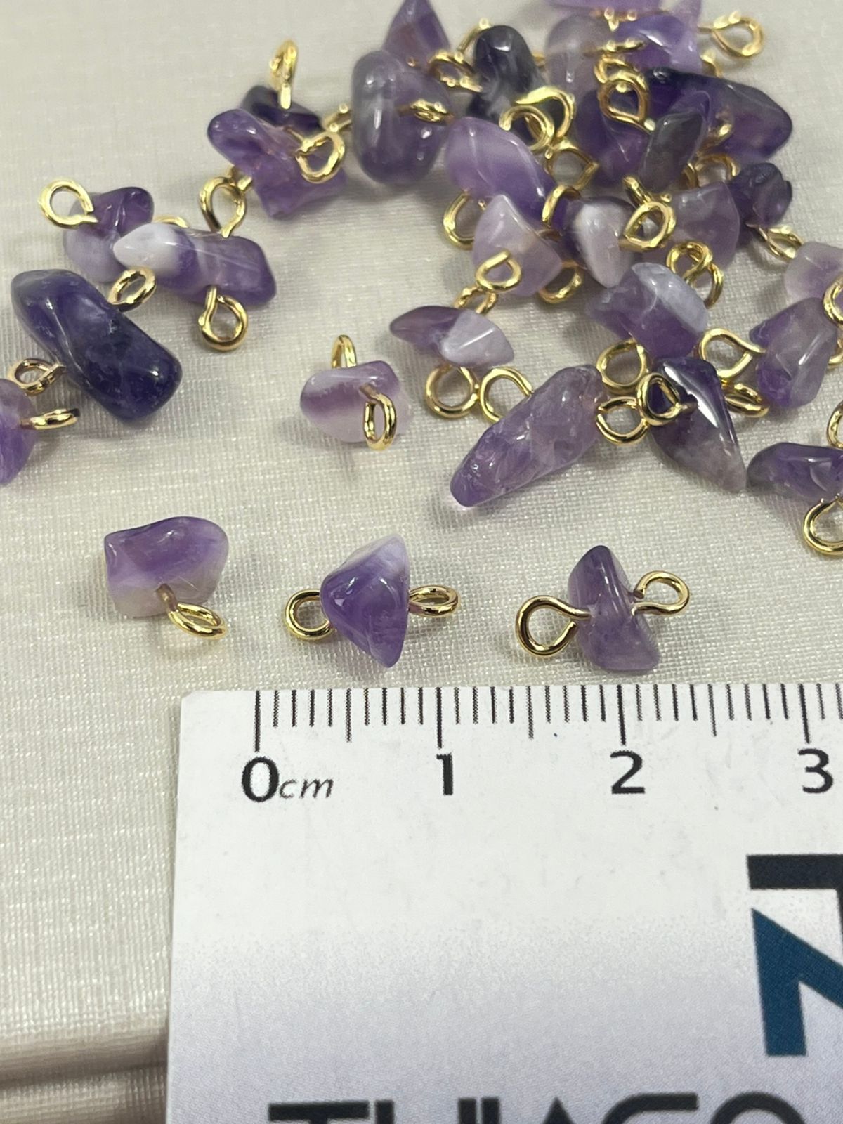 PEDRA NATURAL CASCALHO AMETISTA ROXO CASTROADO - CONTRAPINADA BANHO OURO - TAMANHO MÉDIO 7MM - 1 UNIDADE