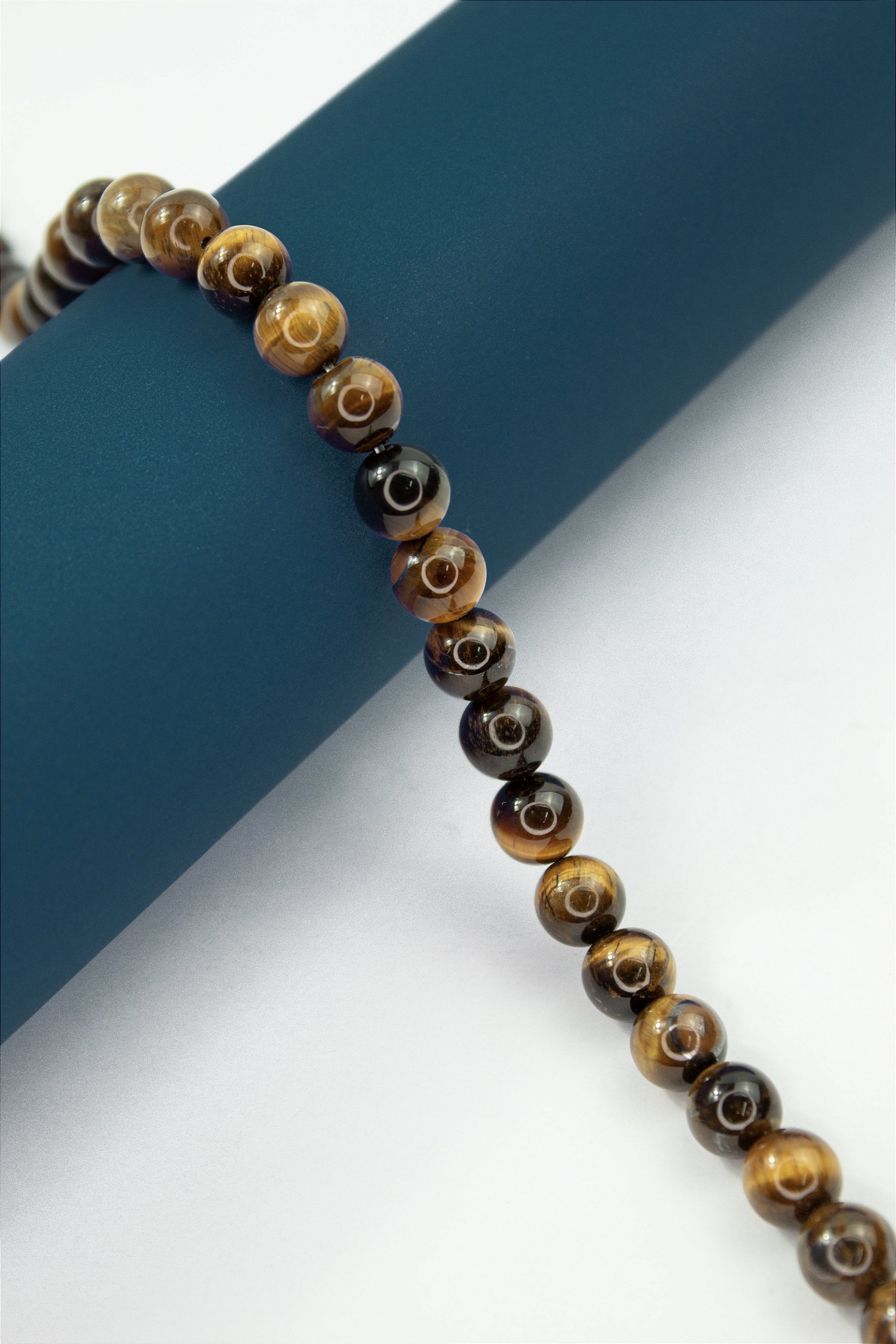 O fio de pedra natural 100% de olho de tigre é altamente apreciado na confecção de bijuterias e semijoias por sua aparência única e suas poderosas propriedades energéticas.