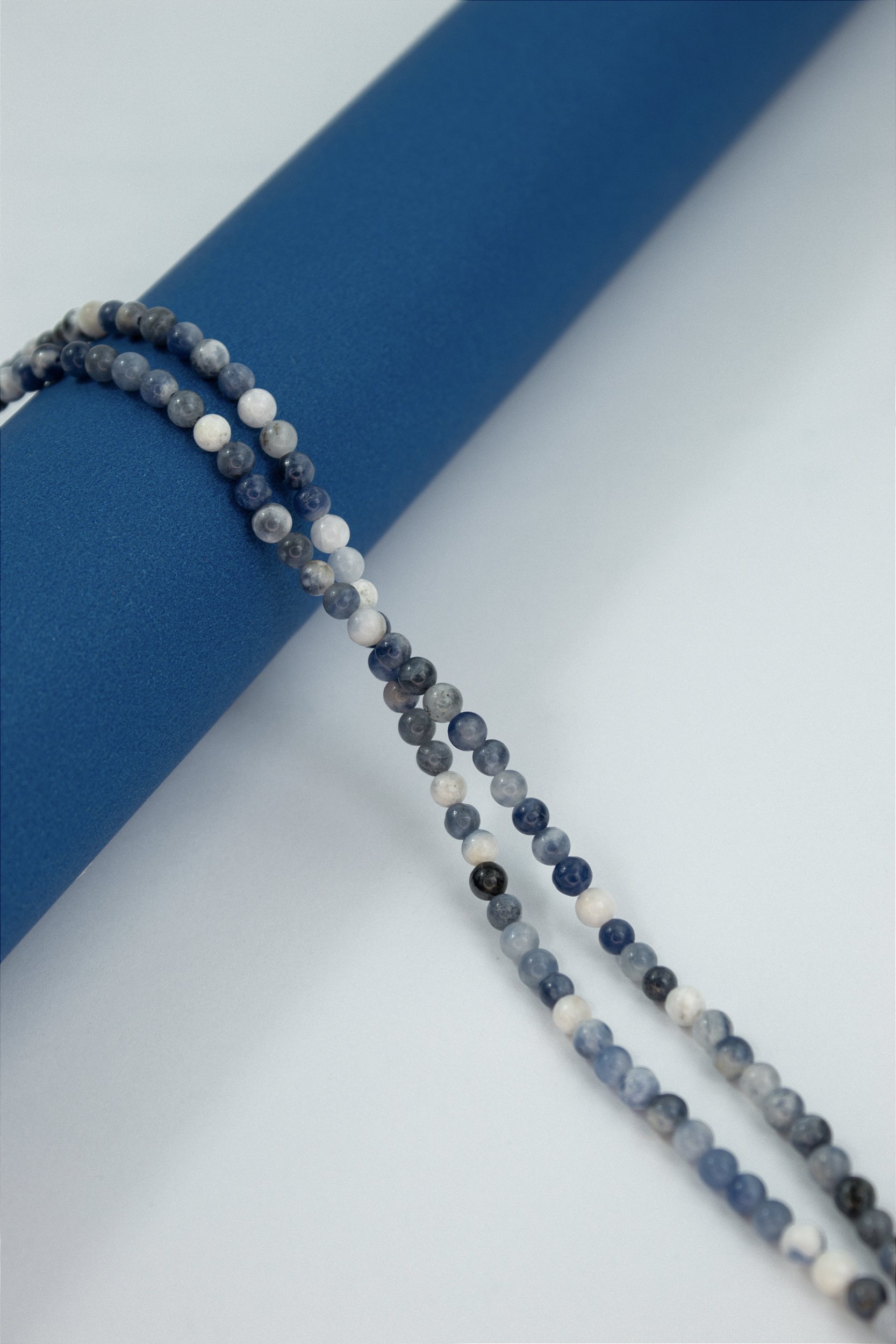 O fio de pedra sodalita é muito procurado na montagem de bijuterias e semijoias por sua coloração marcante, que combina tons de azul profundo com veios brancos, criando um visual sofisticado e natural.