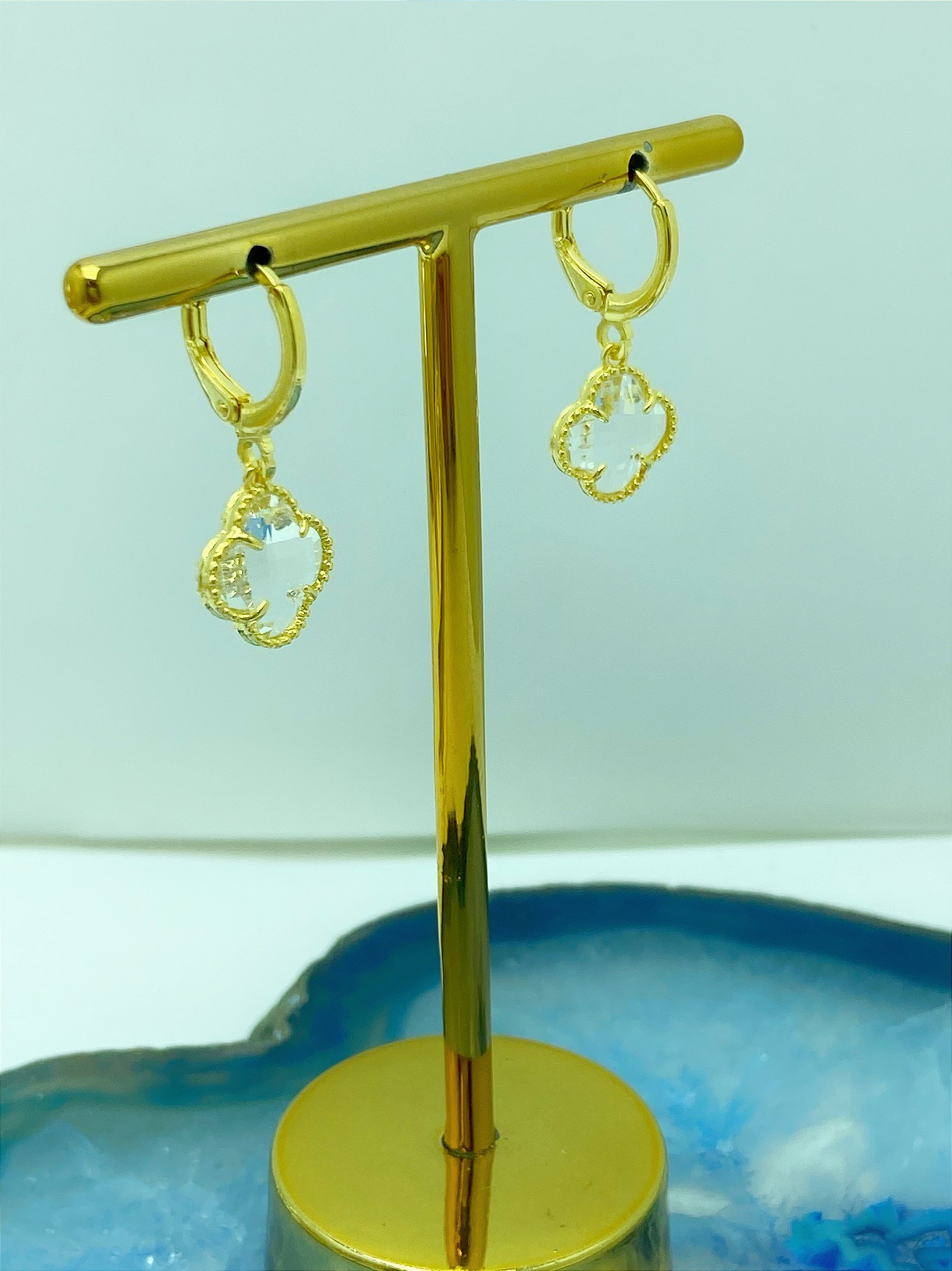 Brinco tranqueta trevo- banho ouro 2 milésimos camada e verniz - 1 par