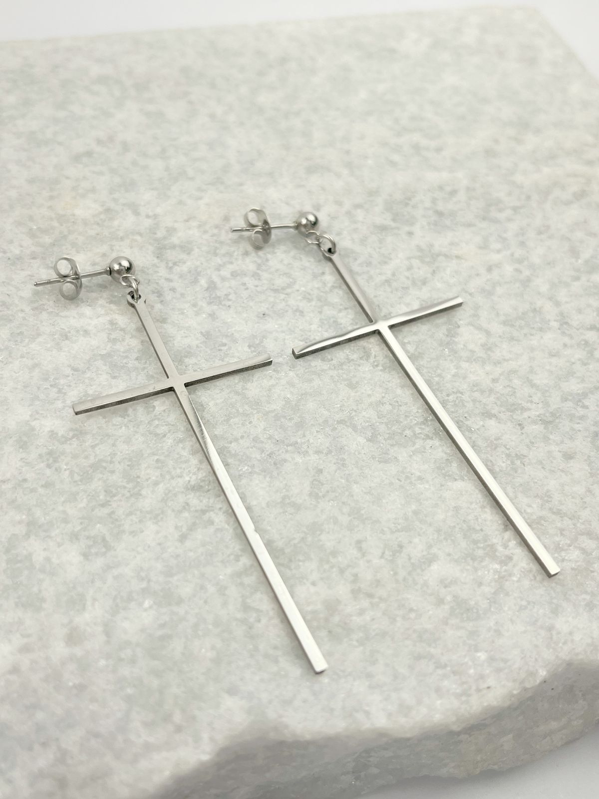 Brinco Cruz aço inox - com base bolinha - 1 par antialergico