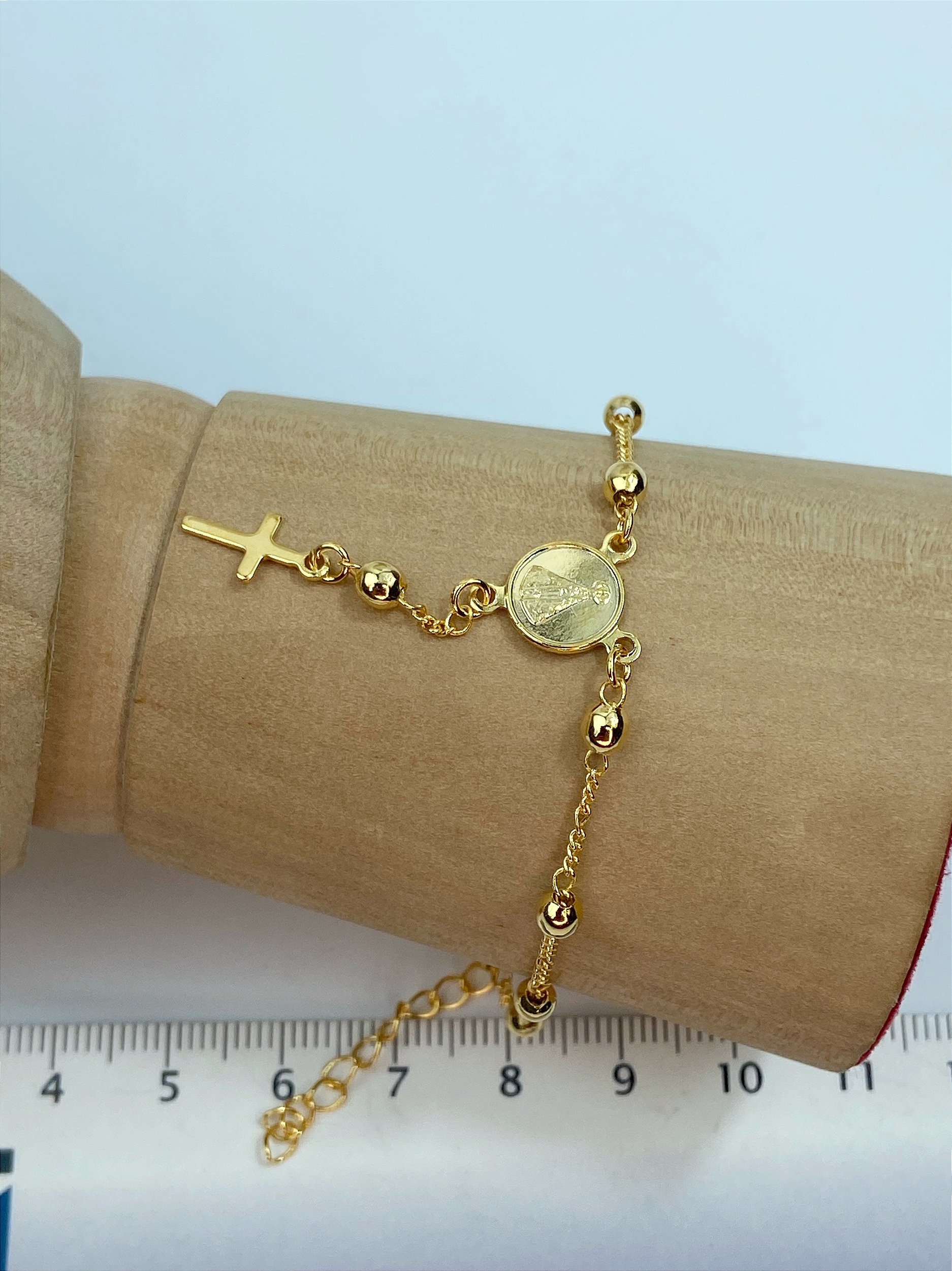 Pulseira Terço Aparecida Banho ouro 2 milésimos - medida 17cm com extensor