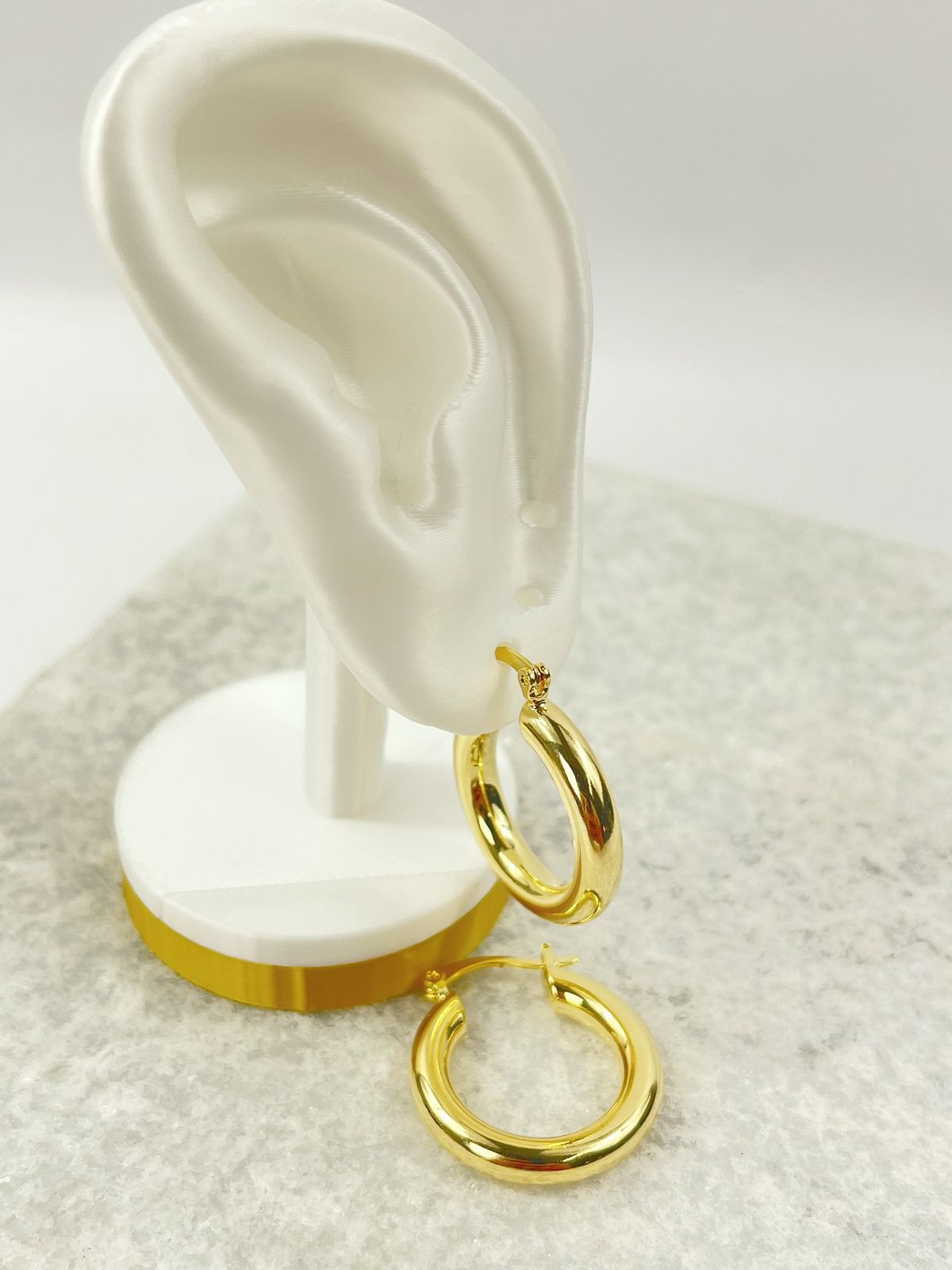Brinco Argola tubo 20mm Banho Semijoia Ouro 5 milésimos com verniz italiano - 1 par