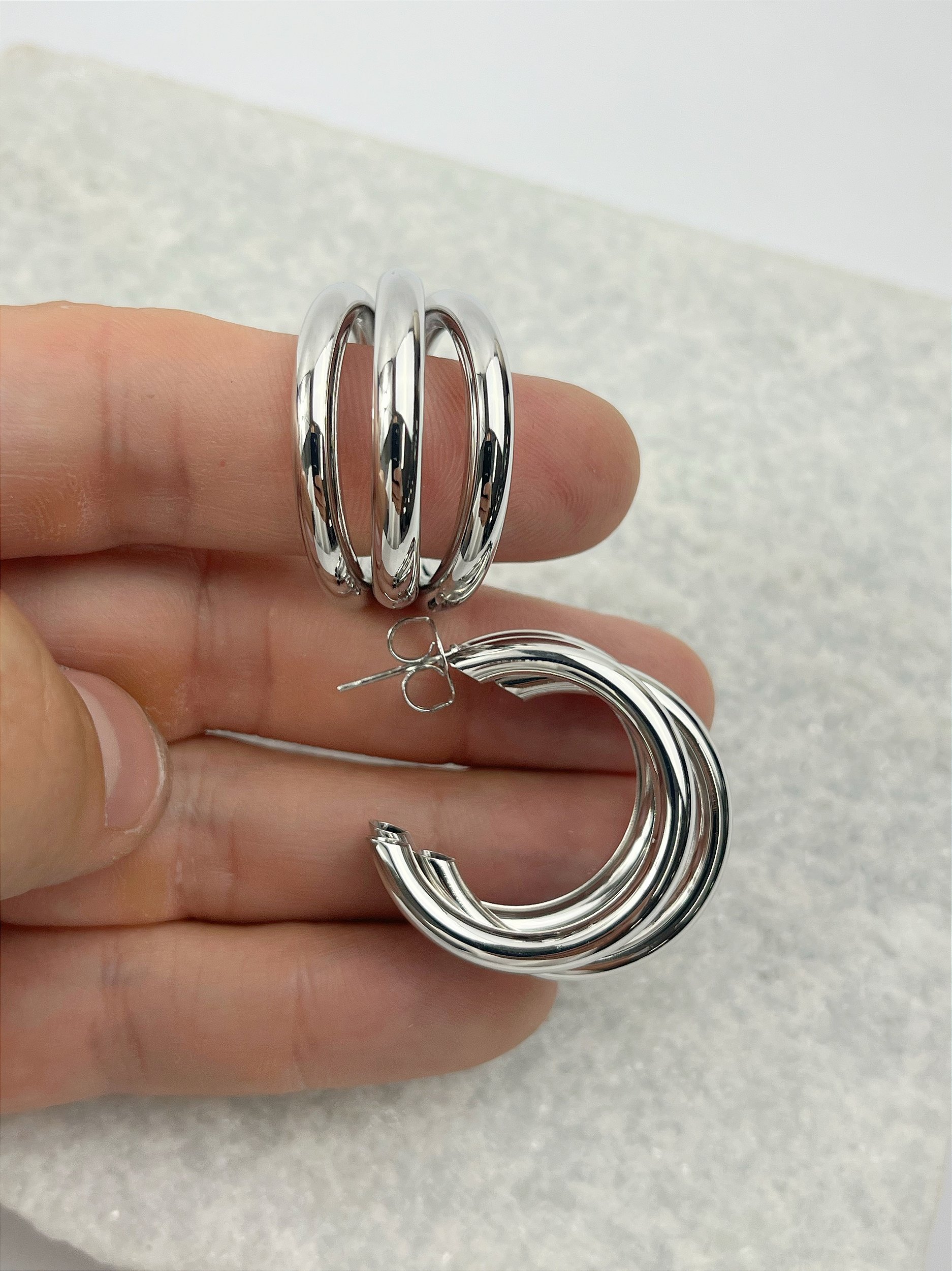 Brinco Argola Tripla banho diamante com verniz - 1 par