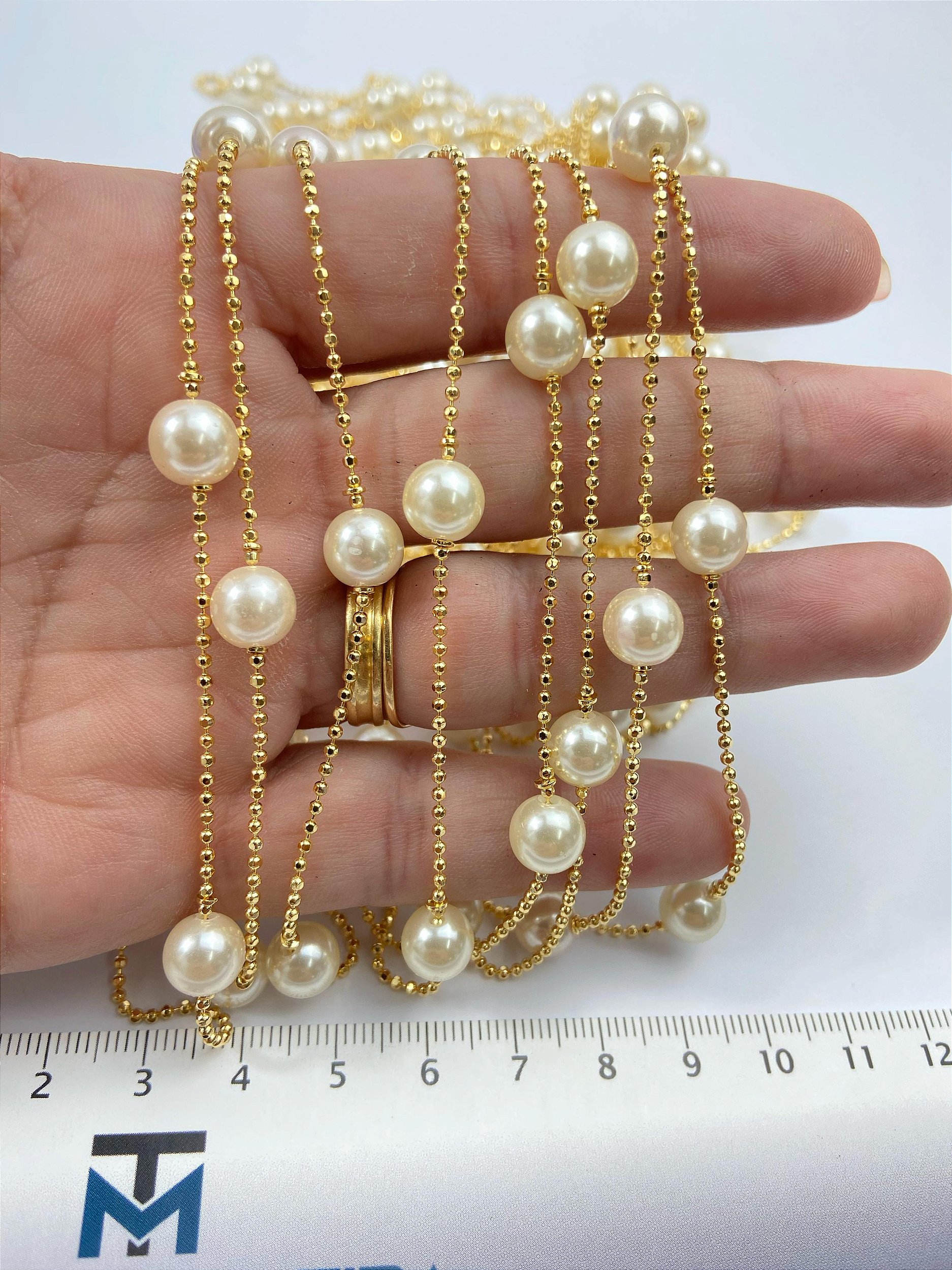 Corrente Perola bolinha diamantada banho ouro camada 2 milésimos com verniz - 1 metro