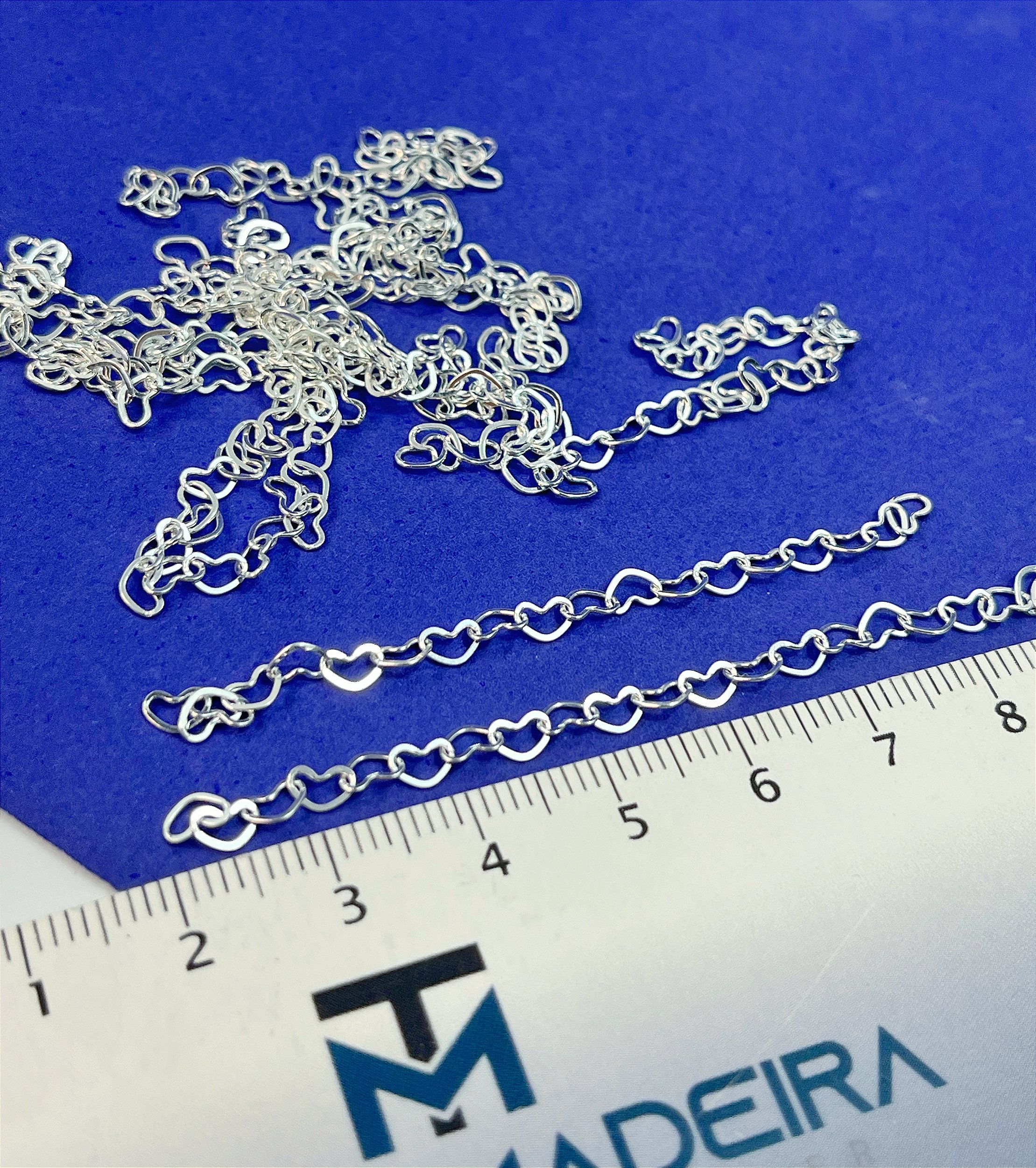 Alongadora Extensora corrente Coração cortada com 5cm - com 10 unidades - Prata 925 banho Semijoia 50 milésimos