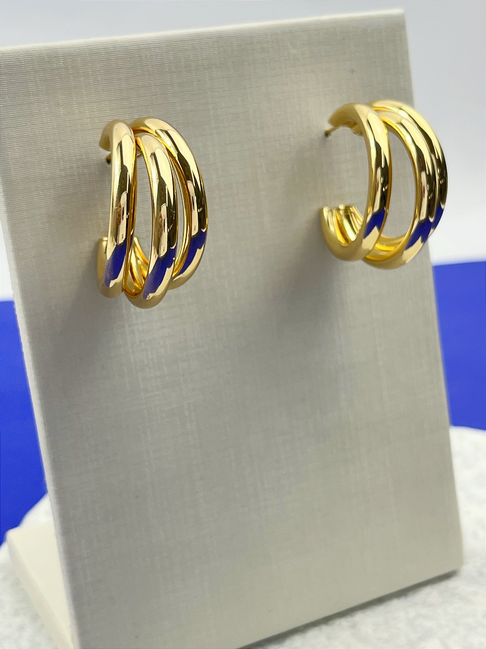 Brinco Argola Tripla banho ouro com verniz - 1 par