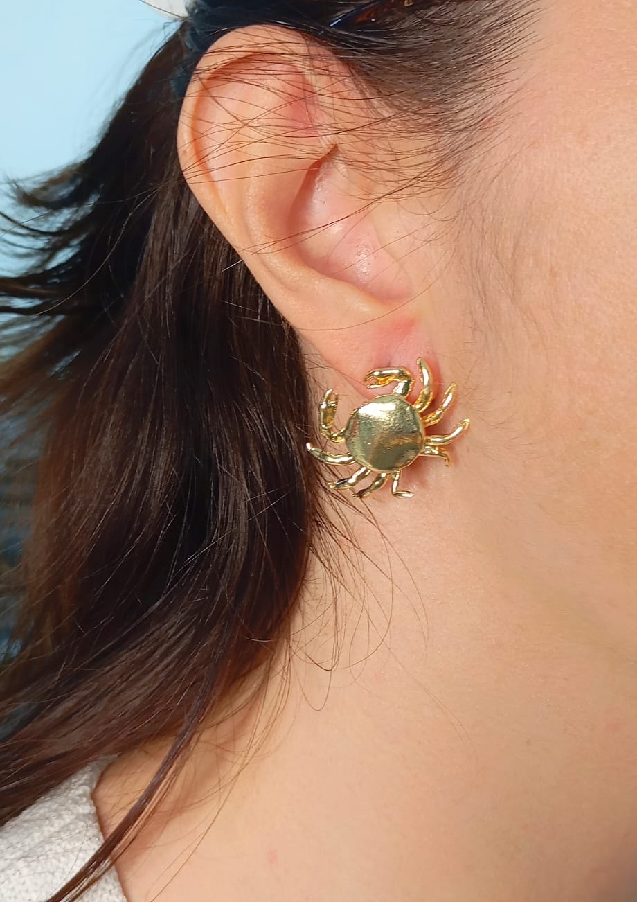 Brinco Caranguejo banho ouro 2 milésimos com verniz protetivo - 1 par