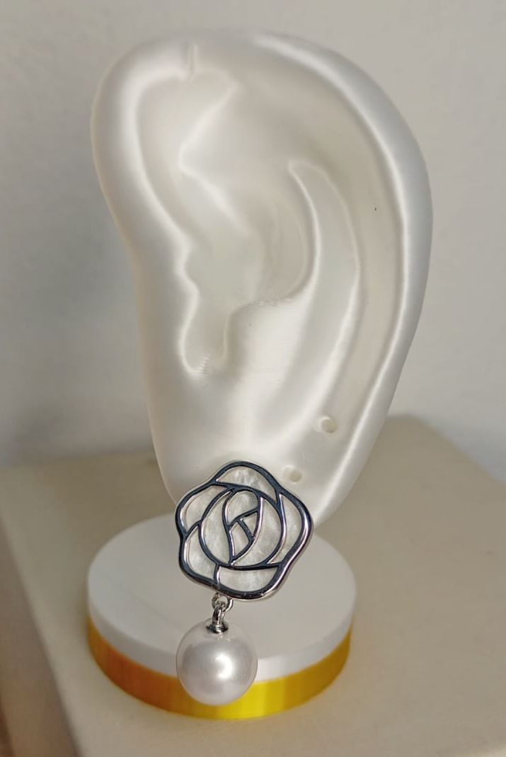 Brinco Flor com Perola e madreperola niquel - 1 par