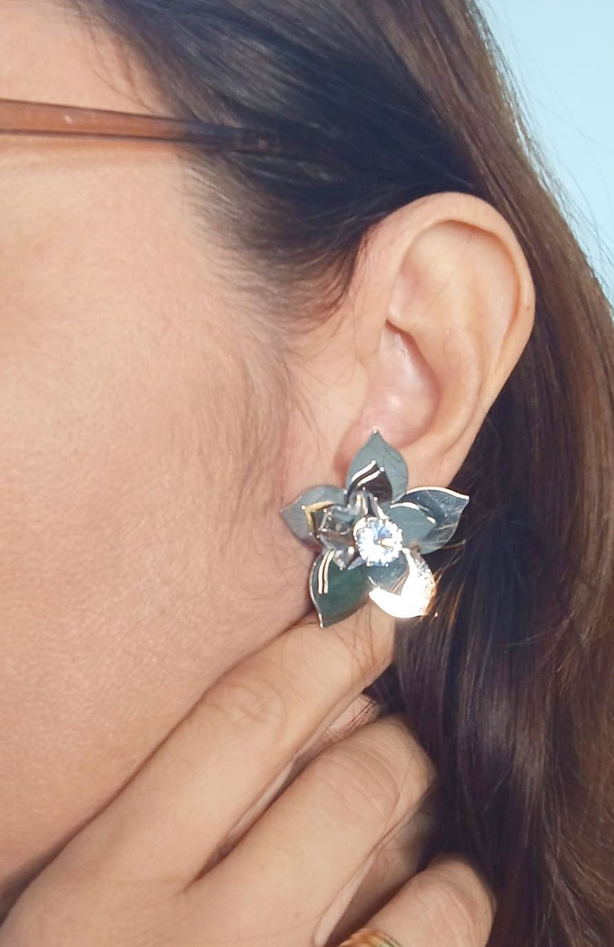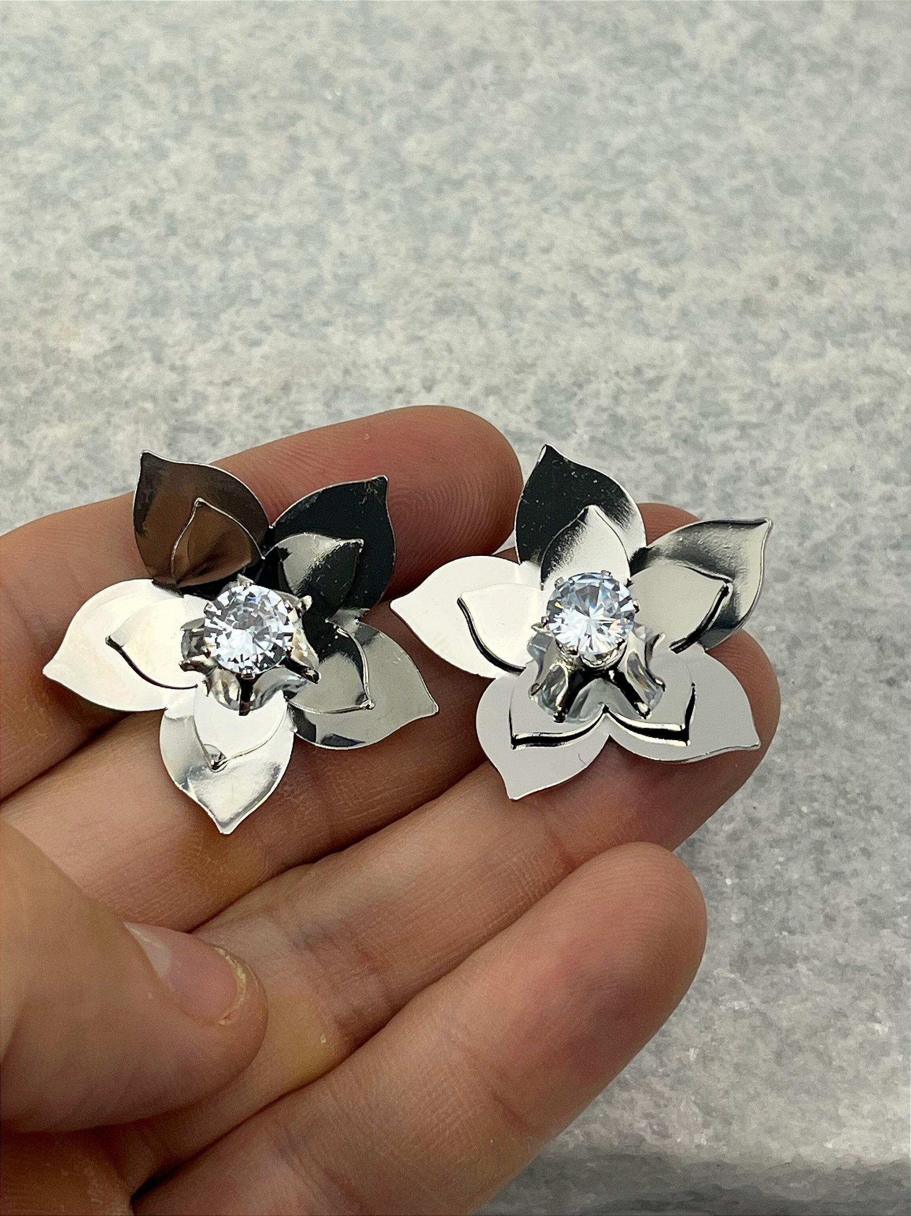 Brinco Flor em aço inox com Zirconia cristal - 1 par
