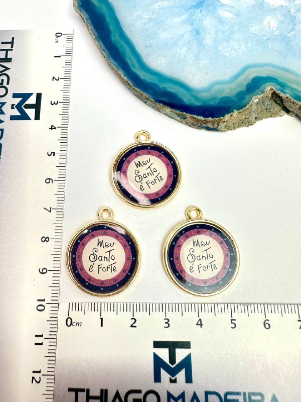 Pingente Escrito Meu Santo É Forte Resinado Colorido