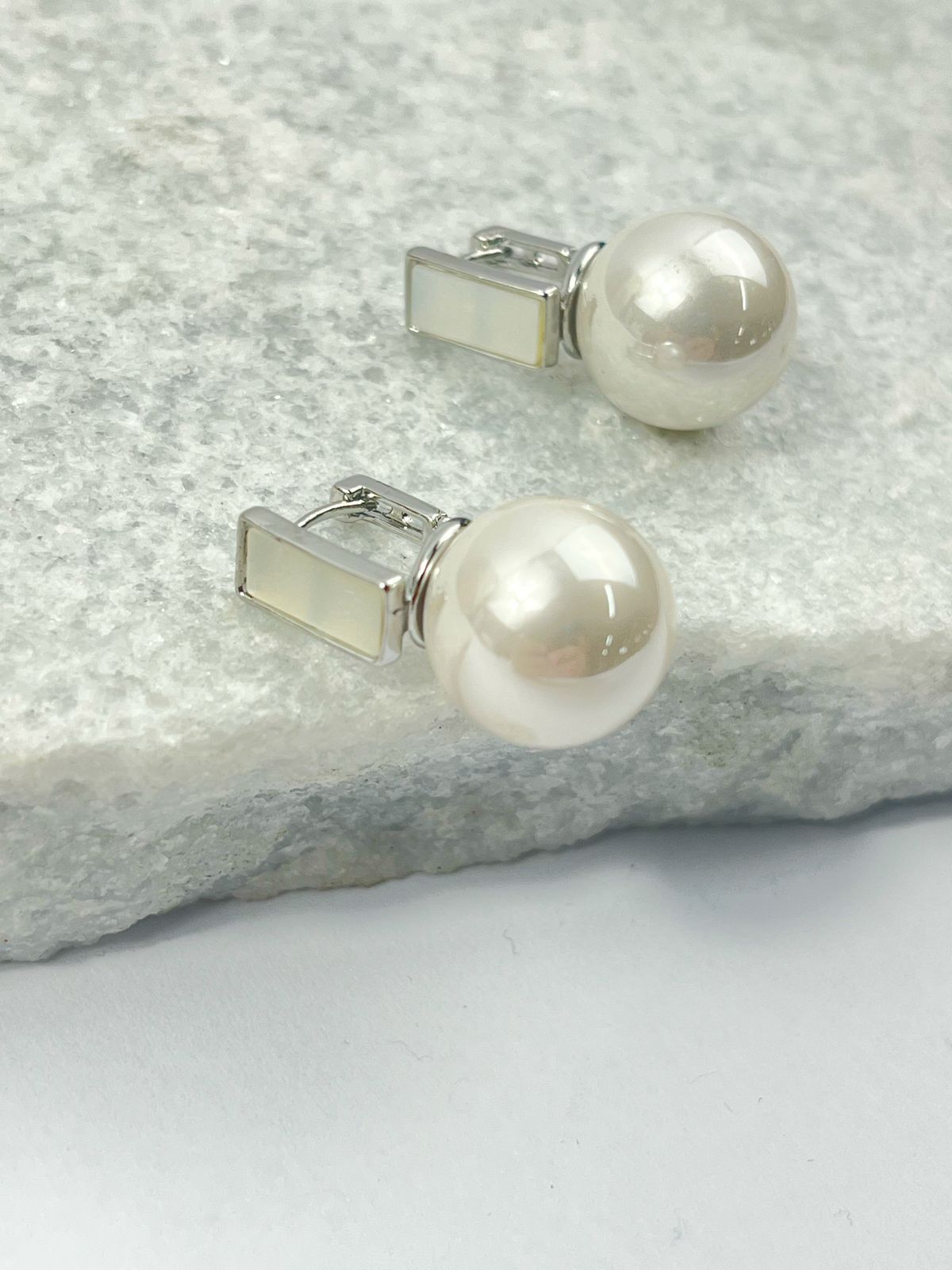 Brinco Perola e madreperola banho niquel diamante com verniz - 1 unidade