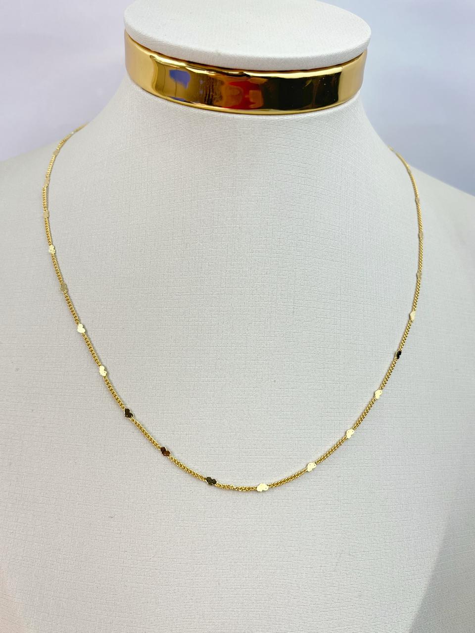 COLAR GRUME CORAÇÃO DIAMANTADA GRUME - COM 45CM E ALONGADORA - BANHO OURO CAMADA 2 MILÉSIMOS