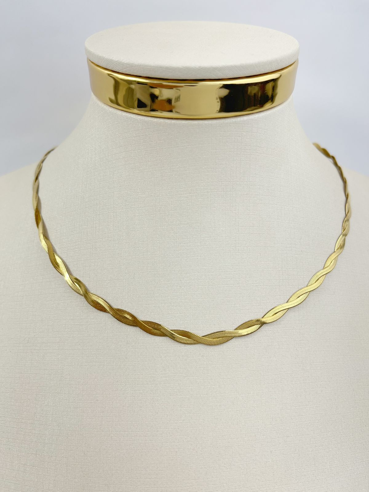 Colar fita trançada aço inox dourada - 40cm mais extensora - 1 unidade antialergico
