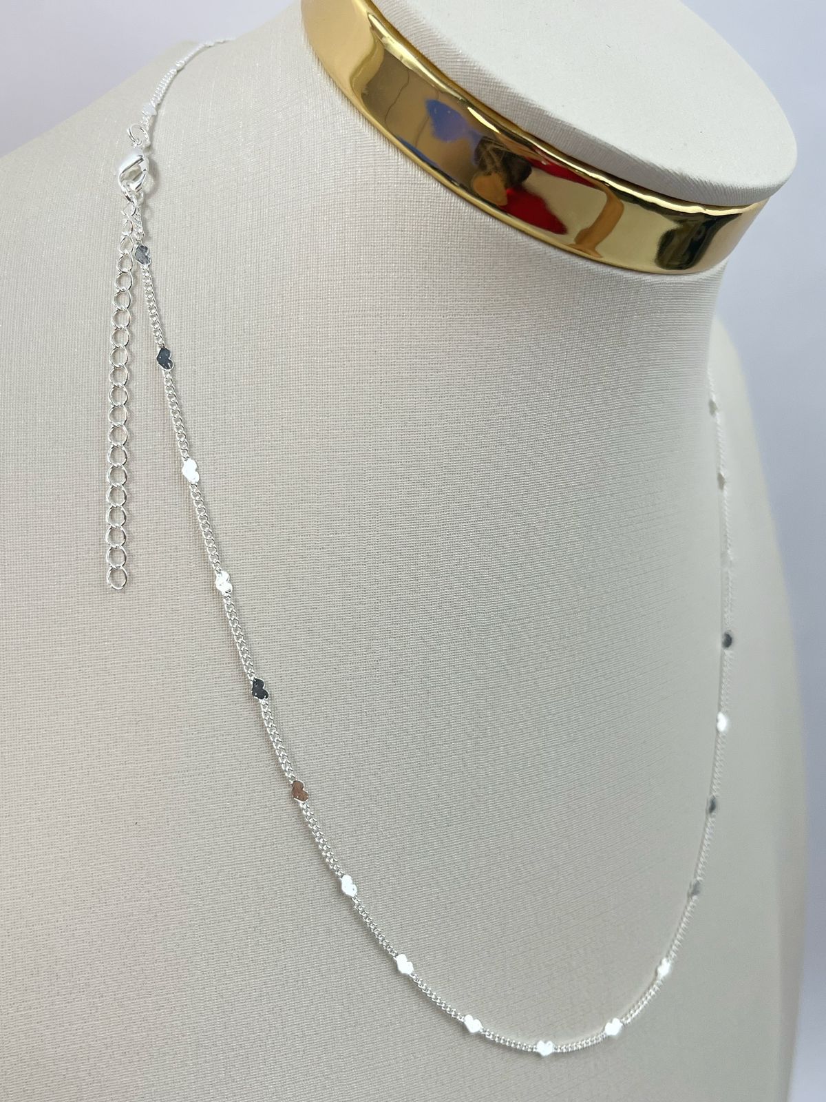 Colar grume coraçao medida 40cm mais extensora Banho Prata 925 Semijoia 50 milesimos verniz italiano - 1 unidade