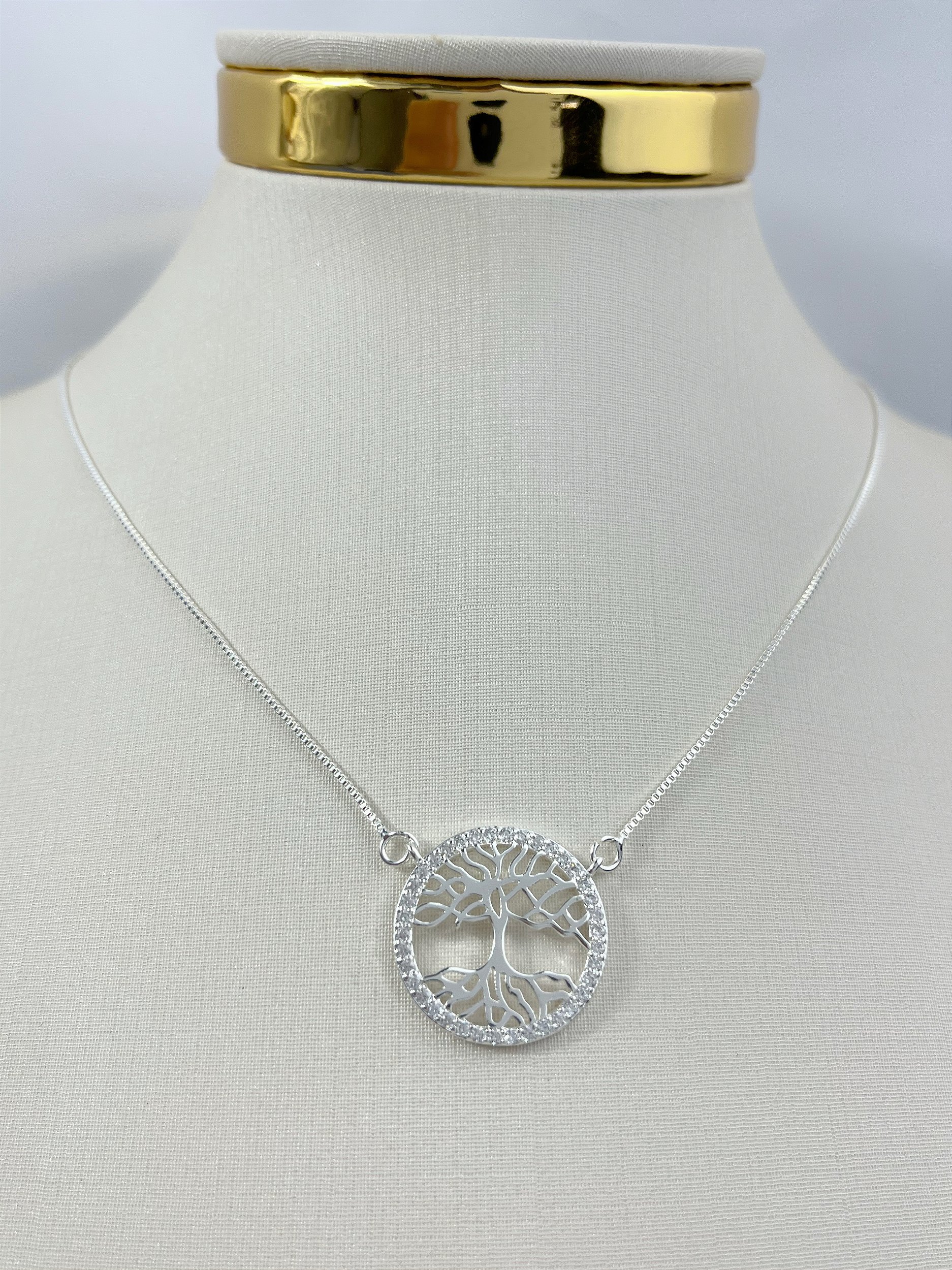 Conjunto Arvore da Vida cravejado zirconia cristal - banho Prata 925 camada 50 milésimos com verniz italiano - semijoia