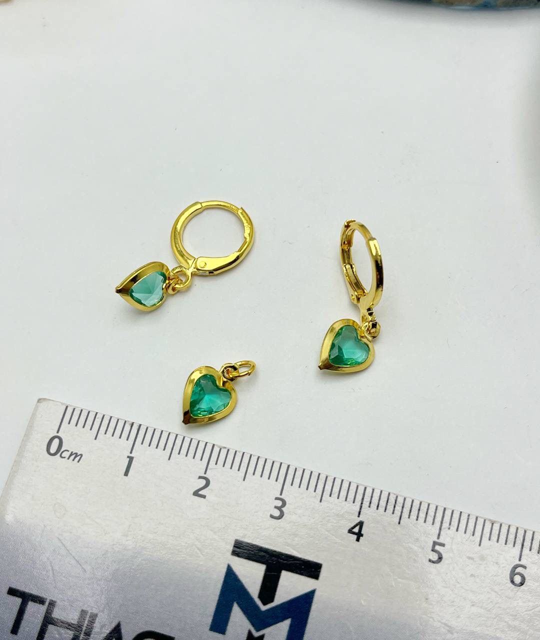 Conjunto brinco tranqueta coracao verde turmalina - brinco e pingente - banho ouro 18k