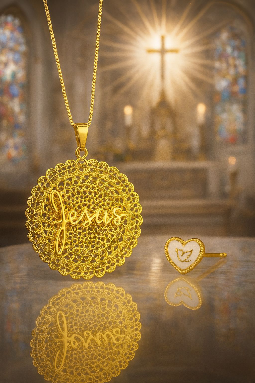 Conjunto Colar + Brinco Jesus Ouro - 01 conjunto