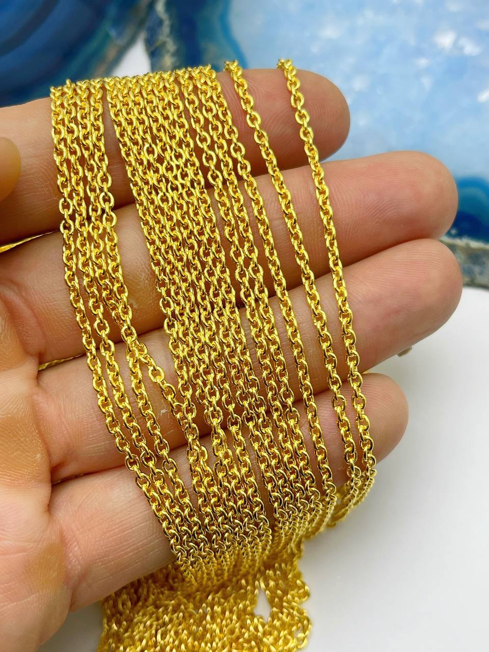 Corrente Cadeado Fina Banho Ouro 2 Milésimos Camada Com Verniz Protetivo italiano - 1 Metro