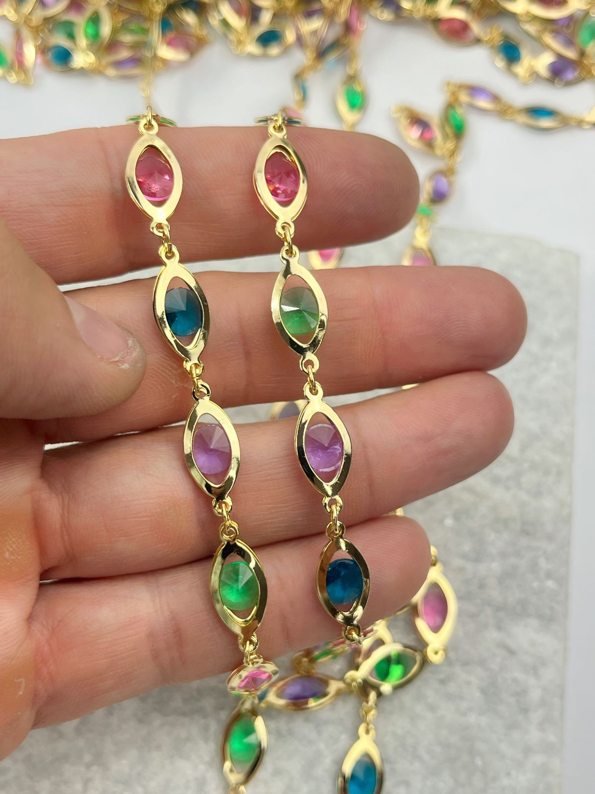 Corrente com Cristais coloridos - banho ouro 2 milesimo e verniz italiano - 1 metro