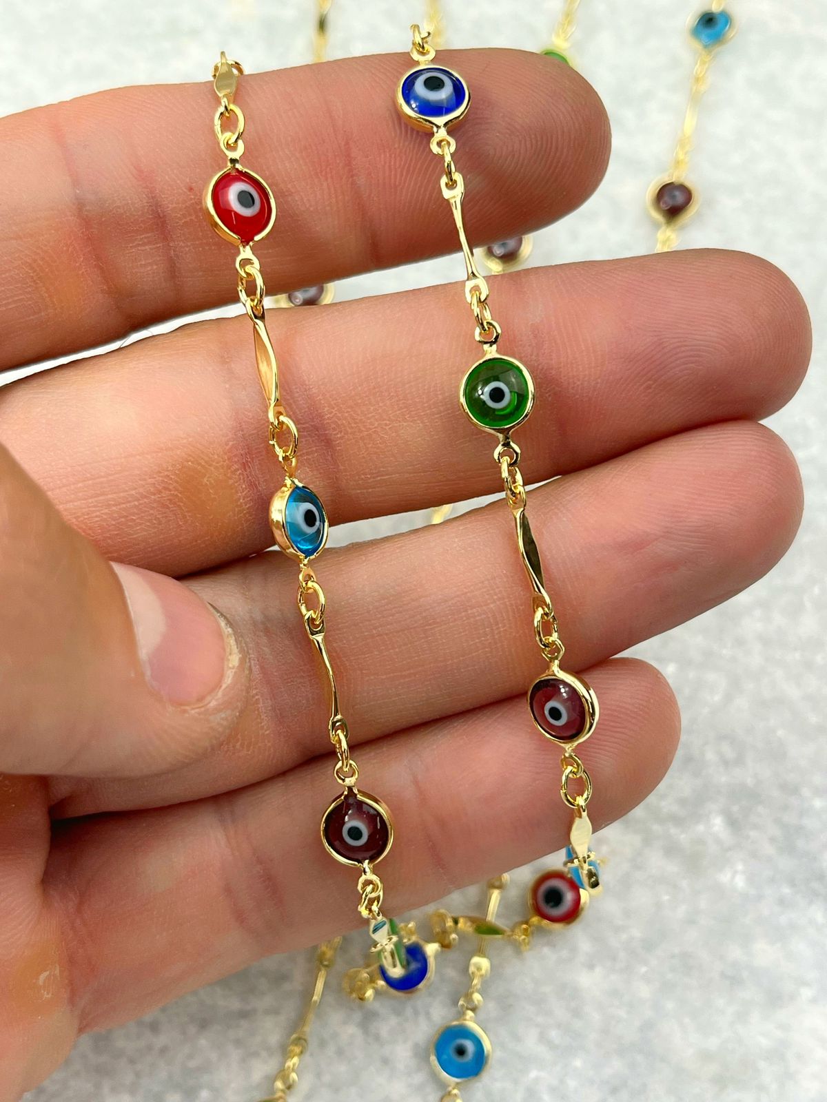 Corrente Olho Grego Colorido banho ouro 2 milesimos com verniz italiano - 1 Metro
