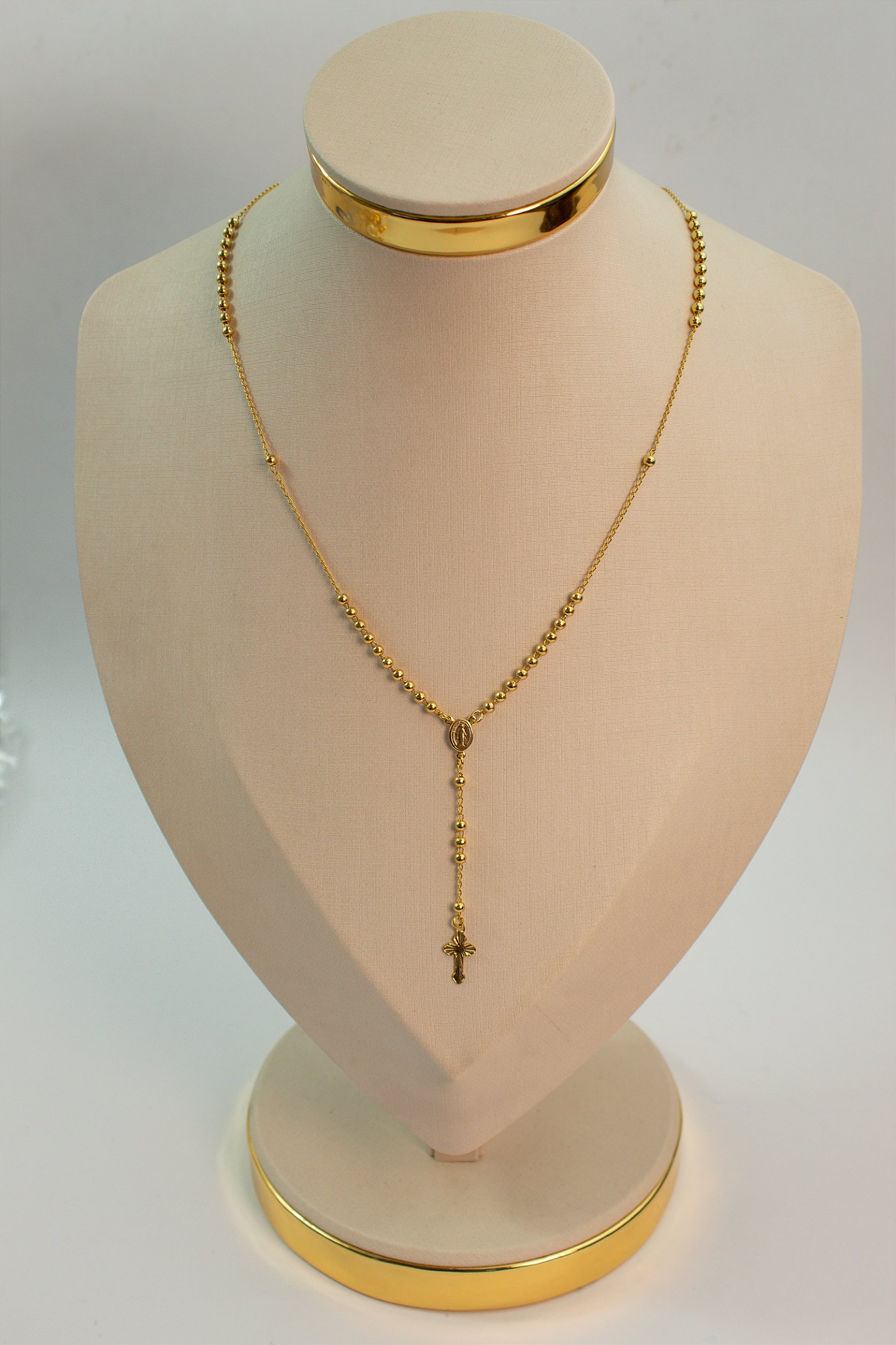 O terço banhado a ouro é uma peça sofisticada que une devoção e estilo, sendo perfeito para momentos de oração e como acessório no dia a dia.