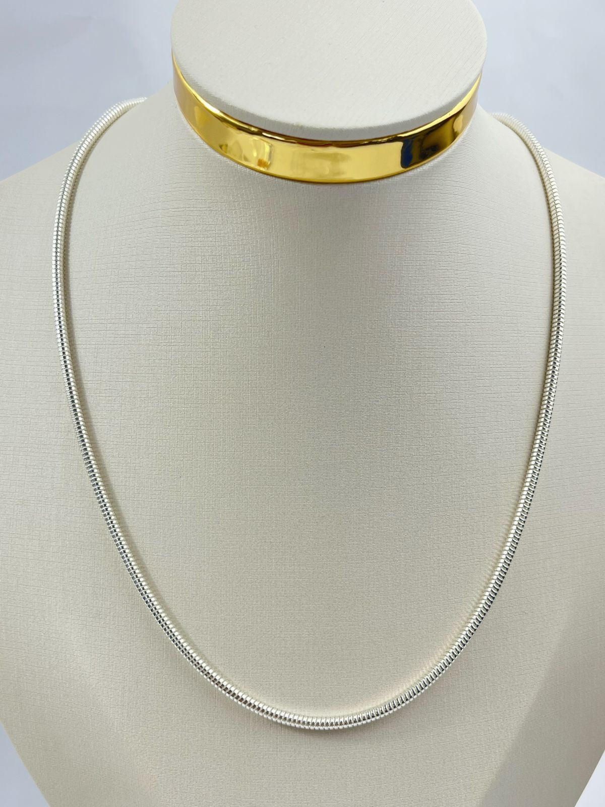 Colar Rabo de rato Prata 60 cm - Banho Prata 925 semijoia camada de 50 milésimos com verniz - 1 unidade