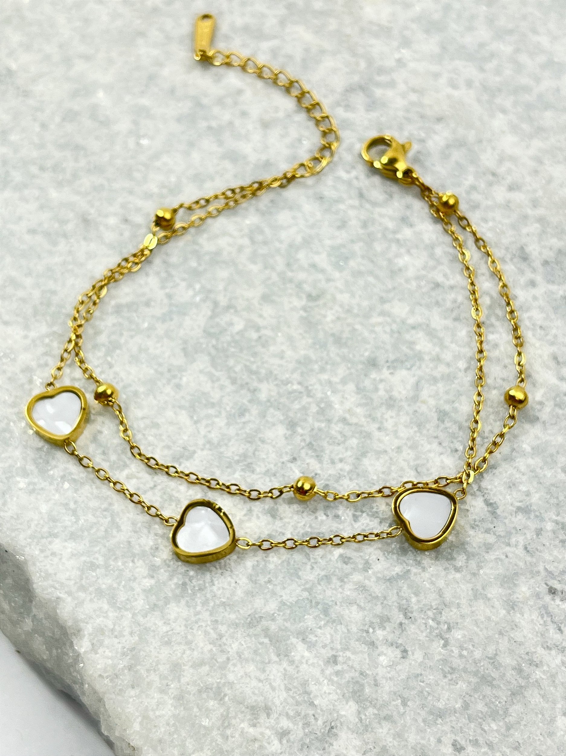 Pulseira Cadeado aço inox dourada com coração medida 17cm - 1 unidade