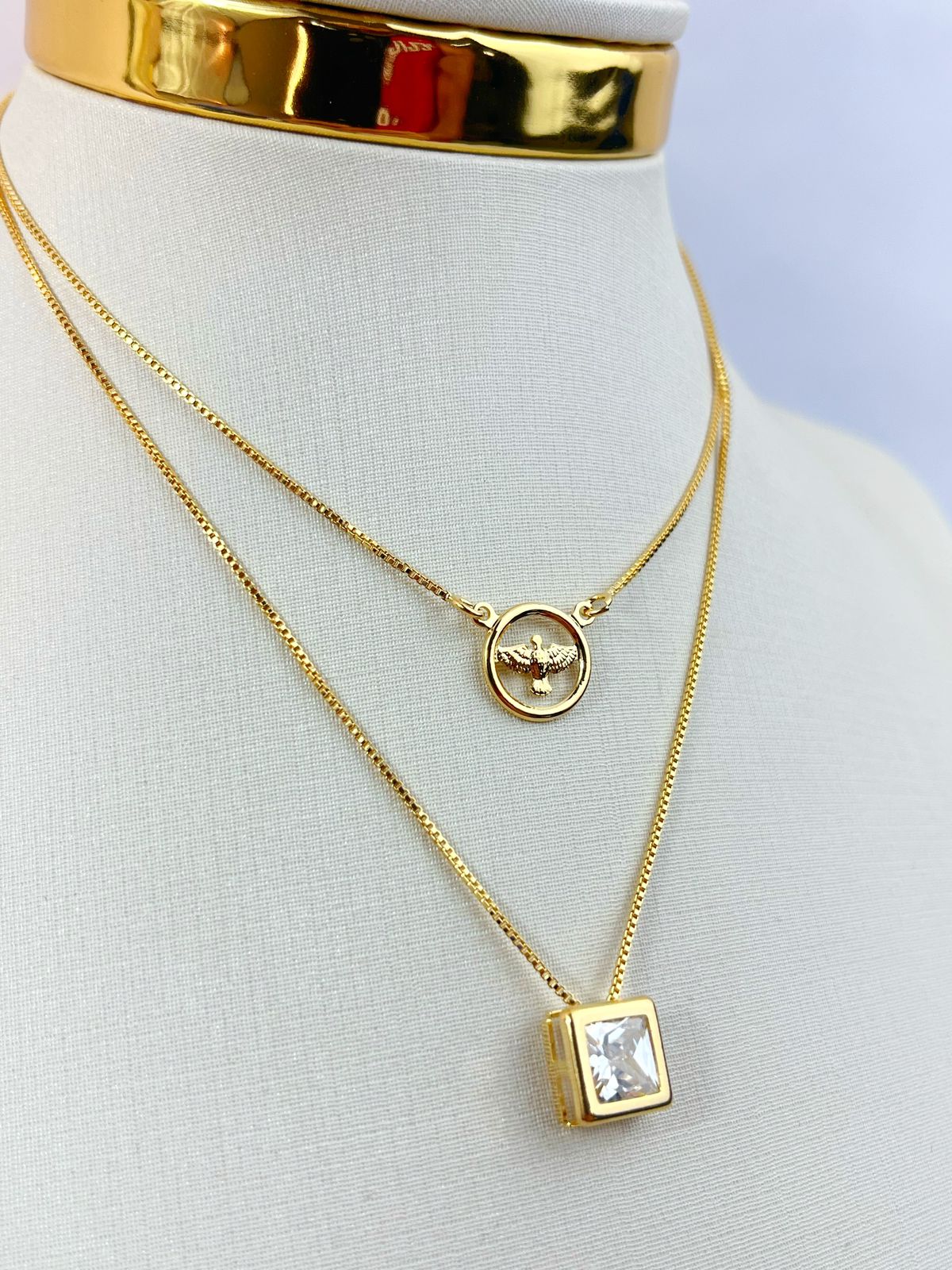 Escapulario Espirito Santo e Zirconia cristal com veneziana banho ouro 2 milesimos com verniz italiano - medida 60cm - 1 unidade