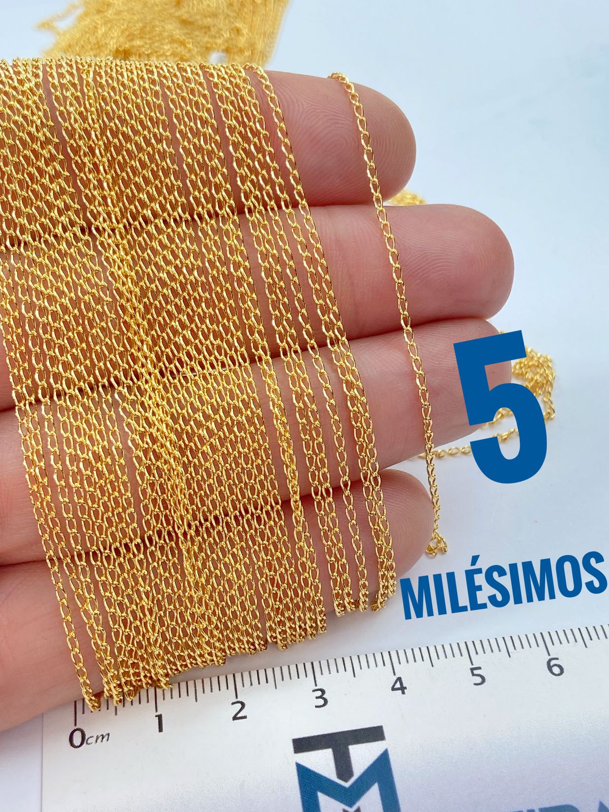 Corrente Grume 0,35mm para terço - Banho *Semijoia* 5 Milésimos Ouro com Verniz Protetivo - 1 metro