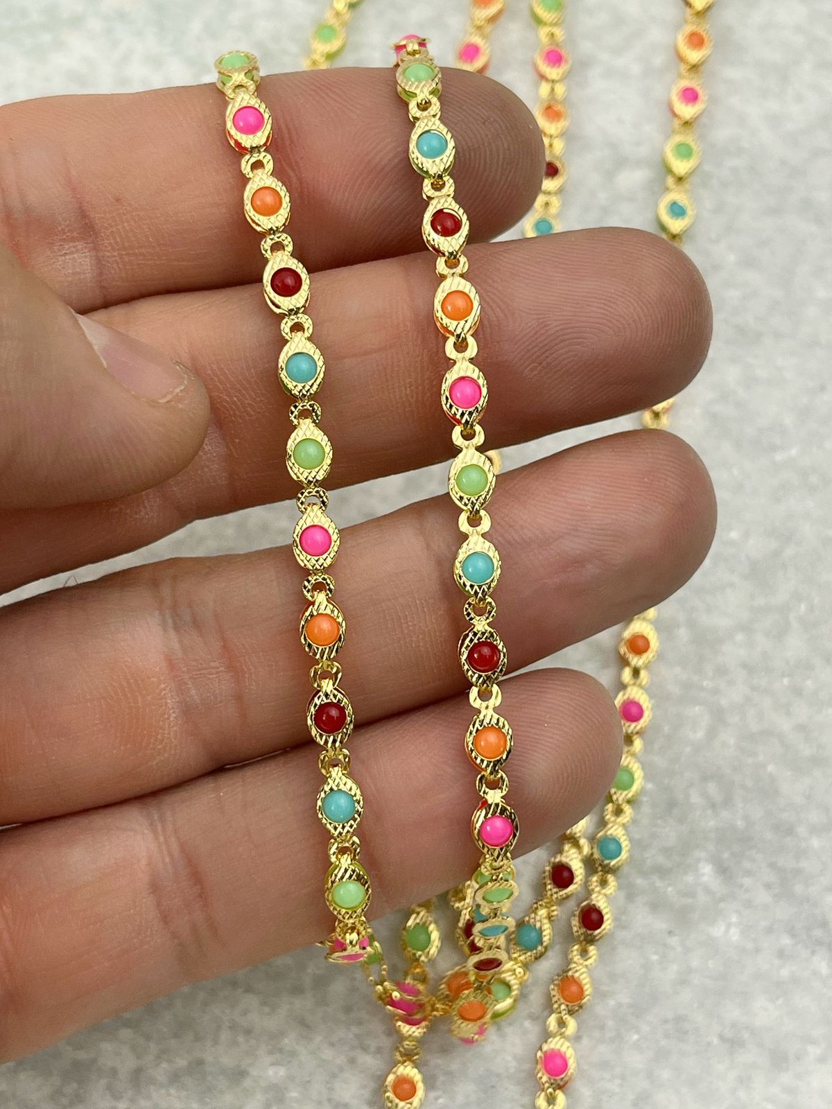 Corrente Bolinhas coloridas verao Banho Ouro Camada 2 Milésimos Com Verniz Italiano - 1 Metro