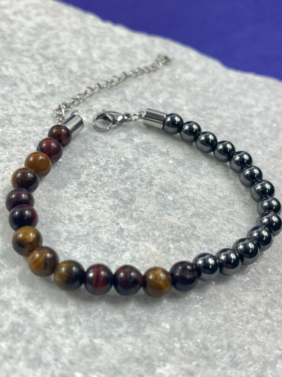 Pulseira Pedra Natural com hematita acabamento em aço inox antialergica - medida 17cm + 7cm de extensora