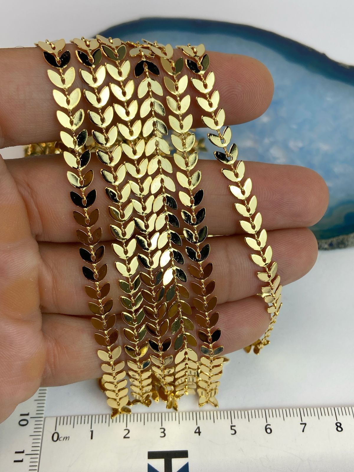 A Corrente Flecha Banho Ouro é uma opção sofisticada e versátil para montagem de joias e semijoias. Seu design em formato de pequenas flechas interligadas cria um efeito elegante e moderno, perfeito para colares, pulseiras e tornozeleiras. Fabricada em latão soldado, essa corrente recebe um banho de ouro de 2 milésimos com verniz protetivo, garantindo maior durabilidade, resistência à oxidação e um brilho intenso por mais tempo.