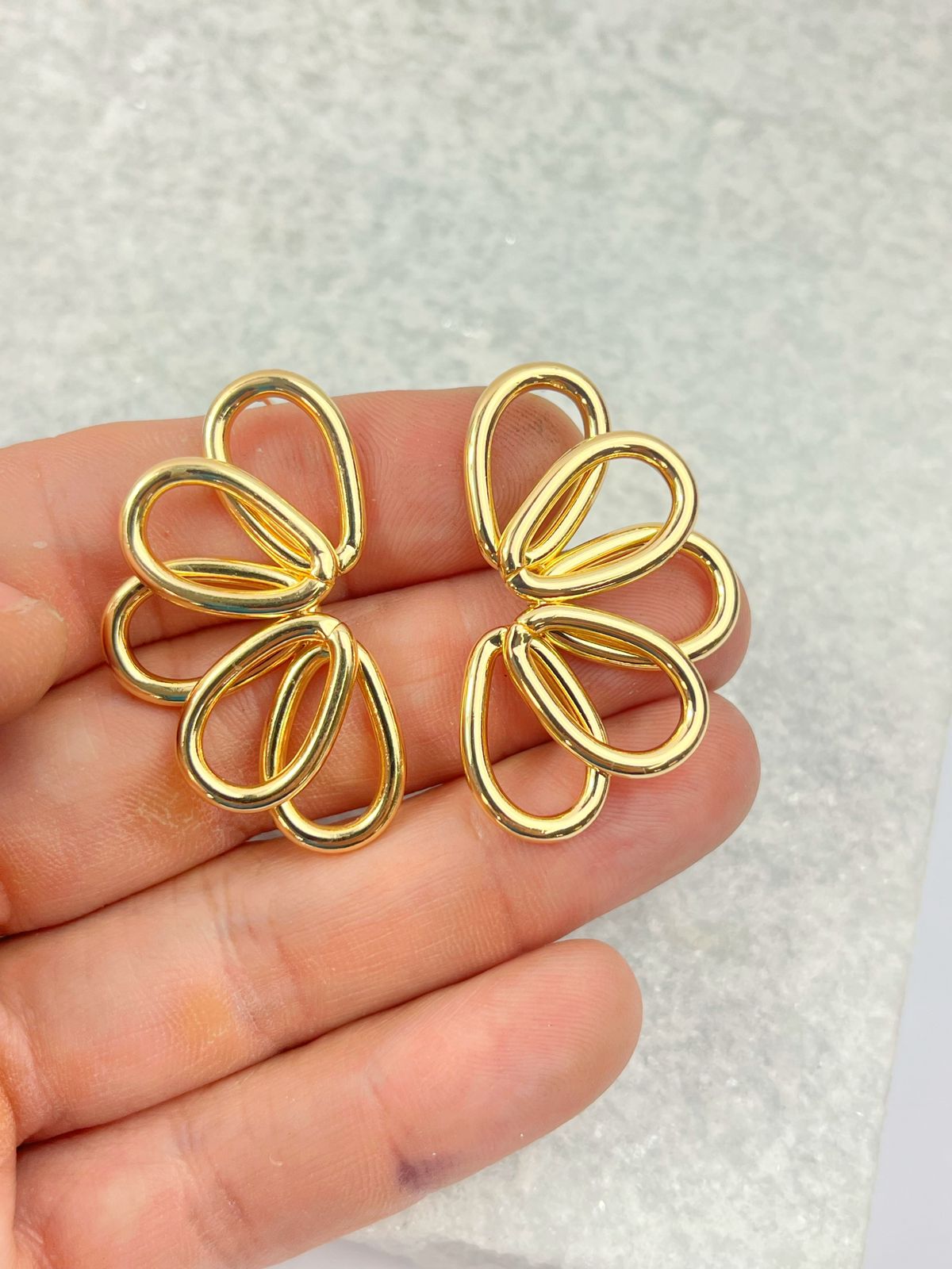 Brinco MEIA FLOR VAZADO orgânico banho ouro - 1 par