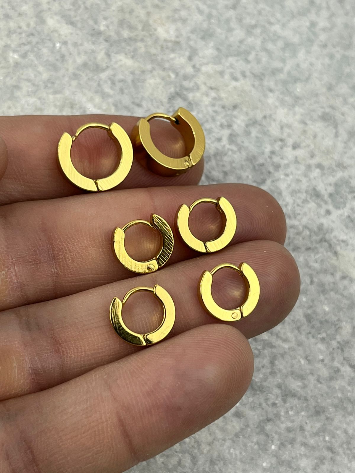 Trio Brinco Argola Aço Inox dourado tipo click - antialergico - P M G - 3 pares