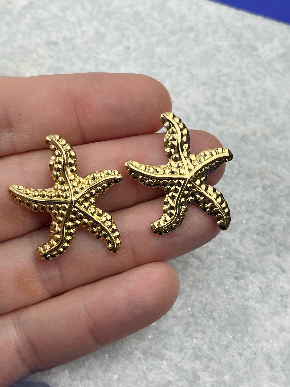 Brinco Estrela do Mar Aço inox dourado - 1 par