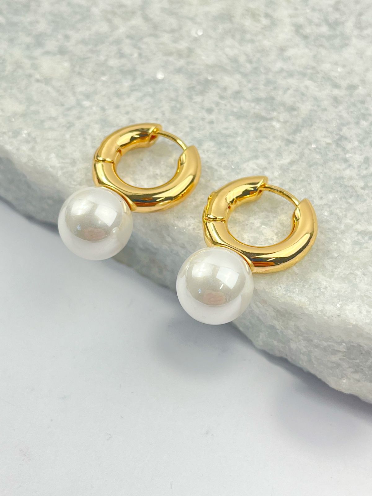 Brinco Argola click com perola banho ouro com verniz - 1 unidade