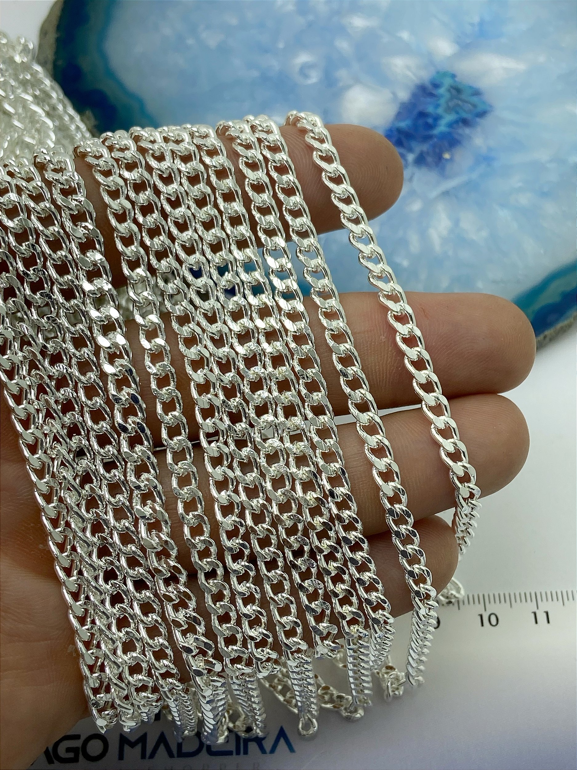 Corrente Grume lixada 1.2mm Banho Prata semijoia camada 50 milésimos com verniz italiano - 1 metro