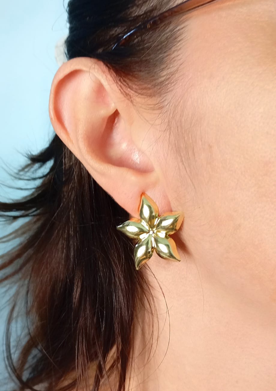 Brinco Flor banho ouro 2 milésimos com verniz protetivo - 1 par