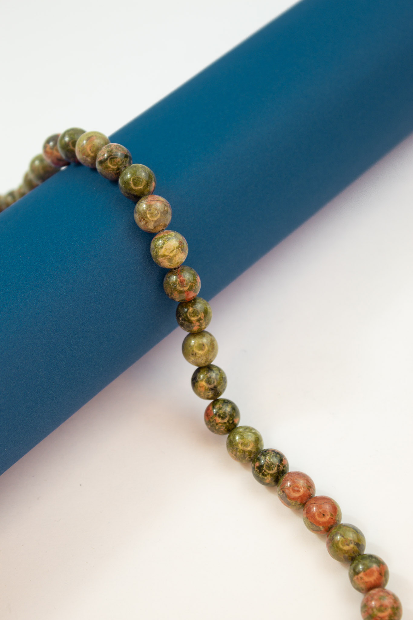 Os fios de unakita destacam-se na semijoia e bijuteria fina por seu significado profundo e beleza natural. Com uma combinação única de tons verdes e rosados, a unakita simboliza equilíbrio emocional, autoconhecimento e renovação.