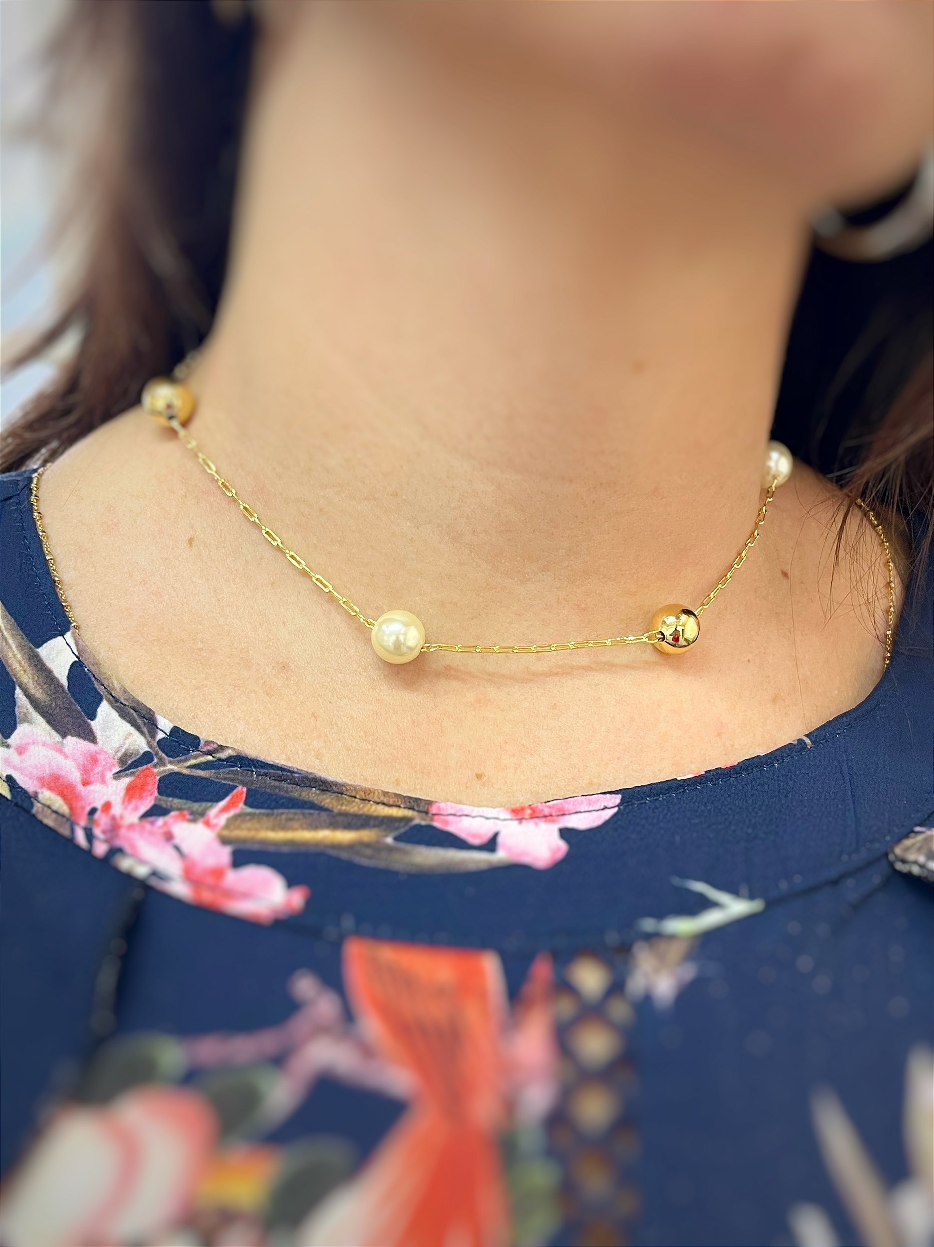 Colar Cartier com pérola e bolinha banho ouro com fecho lagosta e extensora - 1 unidade