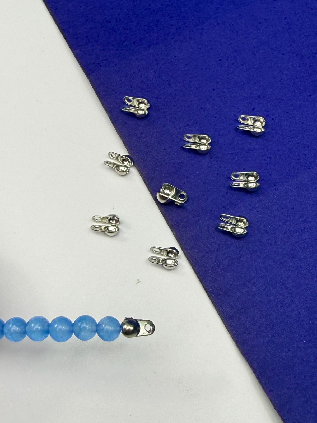As tips bolinha são peças metálicas usadas para dar acabamento em colares e pulseiras feitos com fios como nylon, silicone ou linha. Elas servem para esconder o nó do fio e conectar a peça ao fecho, através de um furinho lateral por onde passa um elo ou argolinha. Para usá-las, basta passar o fio por dentro da tip, fazer um nó, fechar com um alicate e prender o fecho no furinho. Esse acessório garante um acabamento mais bonito, seguro e profissional às bijuterias.