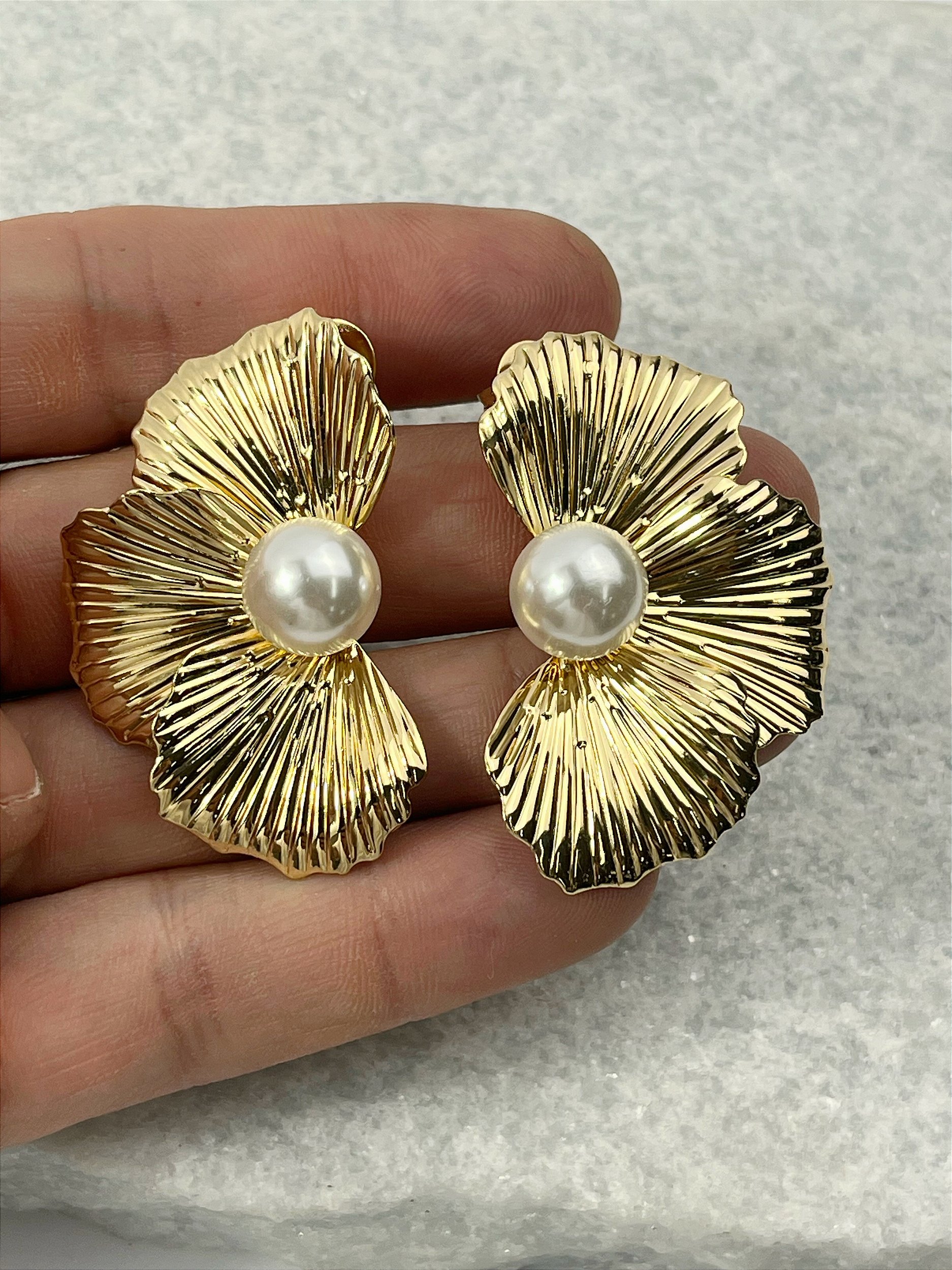 Brinco Orgânico com pérola banho ouro com verniz - 1 par